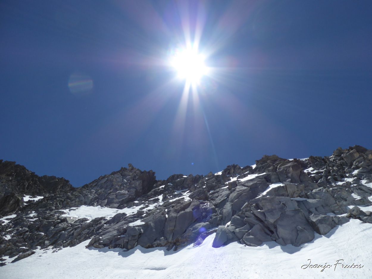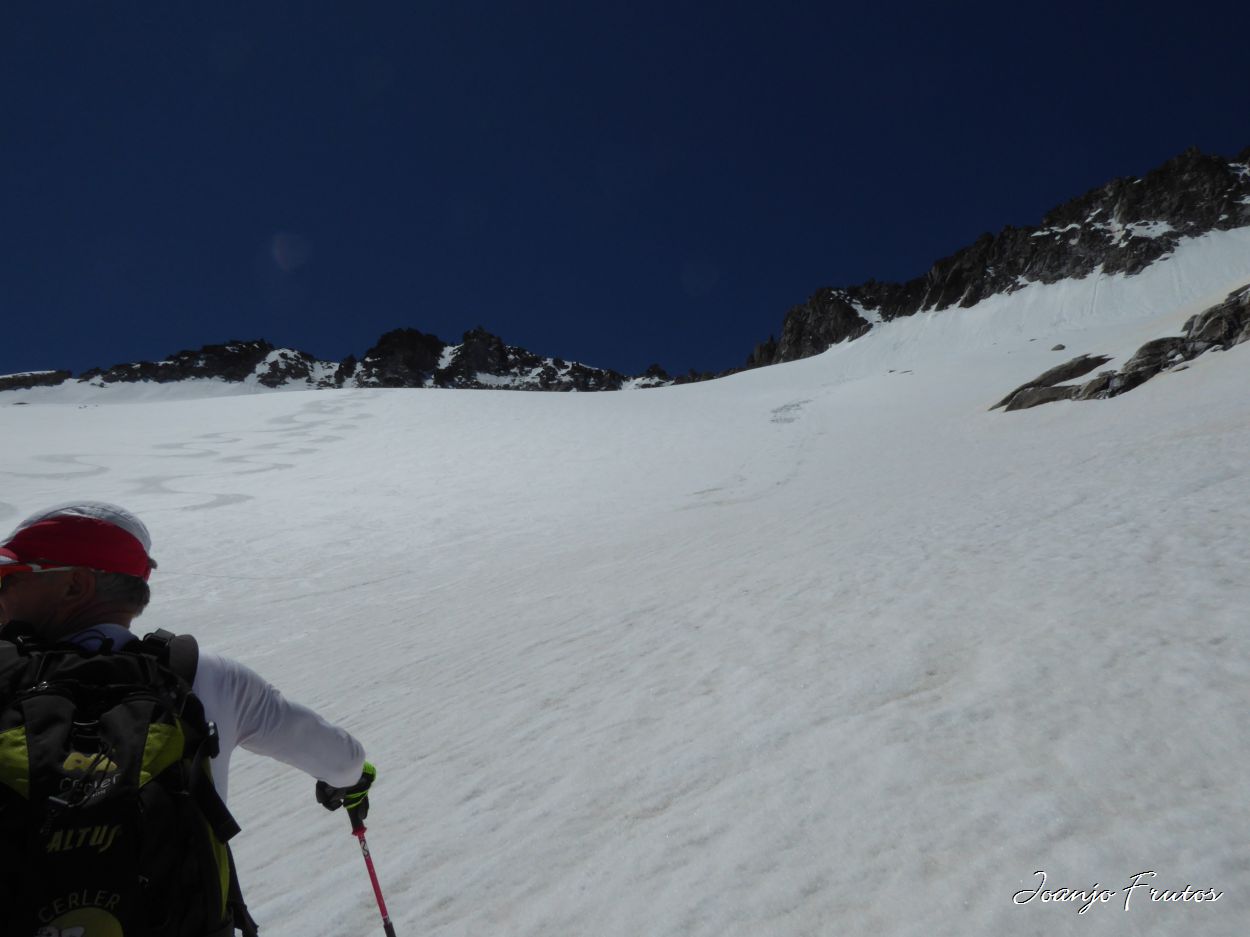 Ha sido un día de sorpresas, primero se nos ha cruzado un sarrio en el primer túnel de Paso Nuevo, en la subida nos hemos encontrado a Jesús, recuperándose de la lesión de los últimos días de esquí de la temporada de remontes, cafetito en el mejor sitio,
