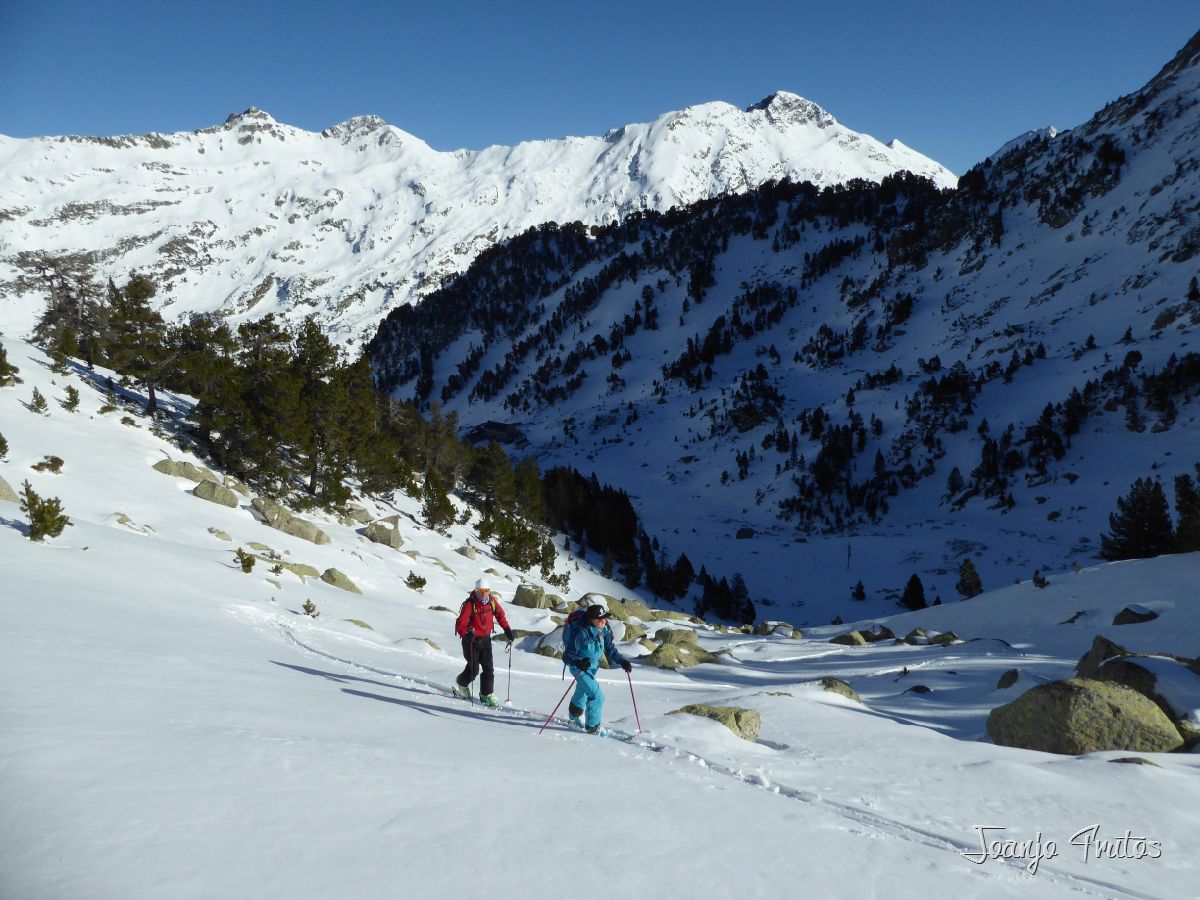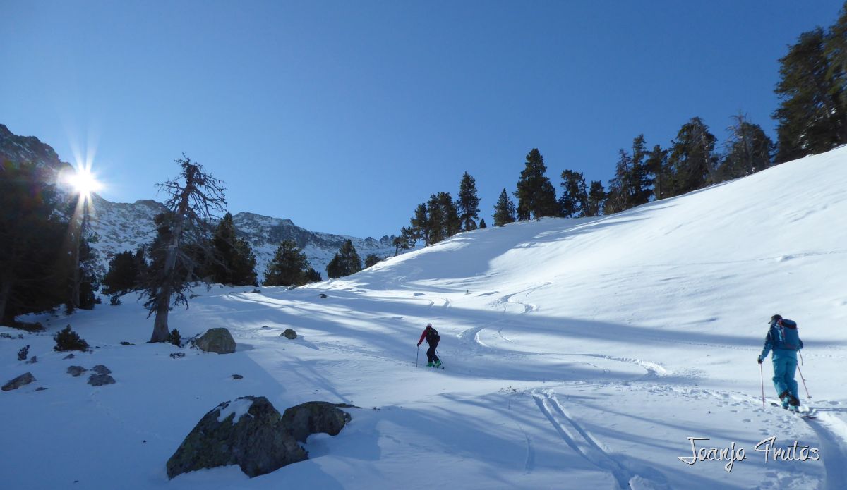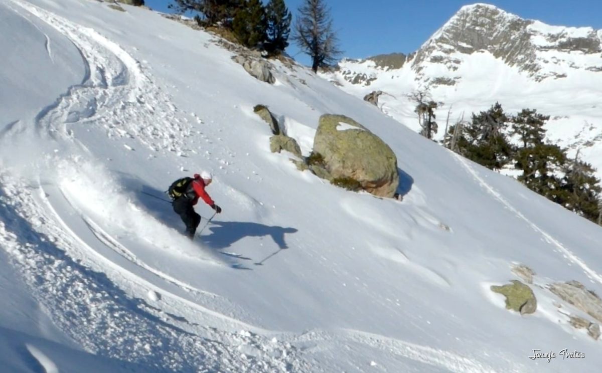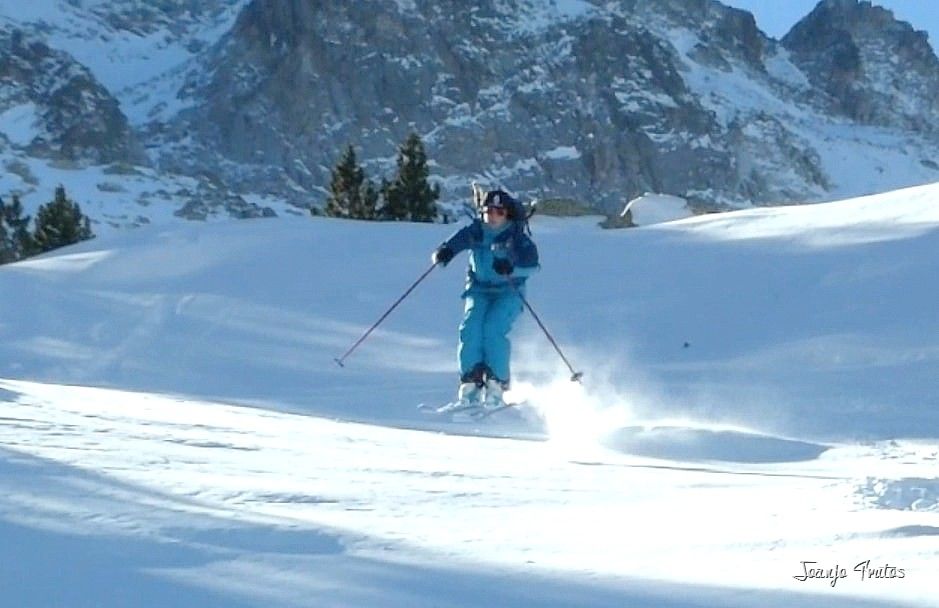 No solamente visitamos el refugio de La Renclusa, sino que también hemos disfrutado de pequeñas lomas con descensos con muy buena nieve polvo, cosas de las borrascas de norte. El Valle de Benasque tiene dos vertientes del Pirineo, por tanto siempre hay opciones.