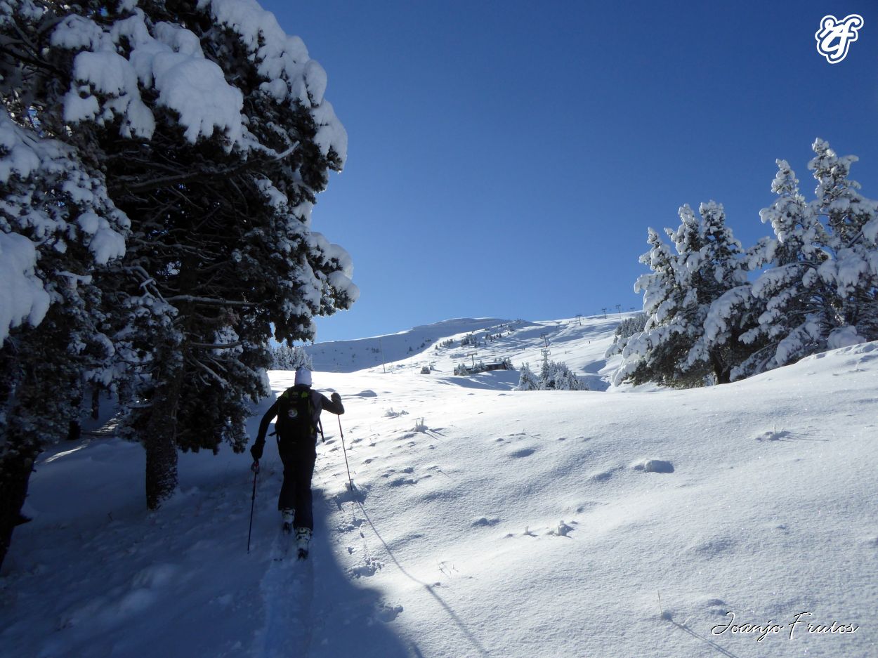 Hoy hemos realizado la subida por Pinar a Rincón del Cielo y luego hacia Cogulla, esquiamos hasta la entrada del cruce del camino forestal que nos lleva hasta el TS El Rincón del Cielo.