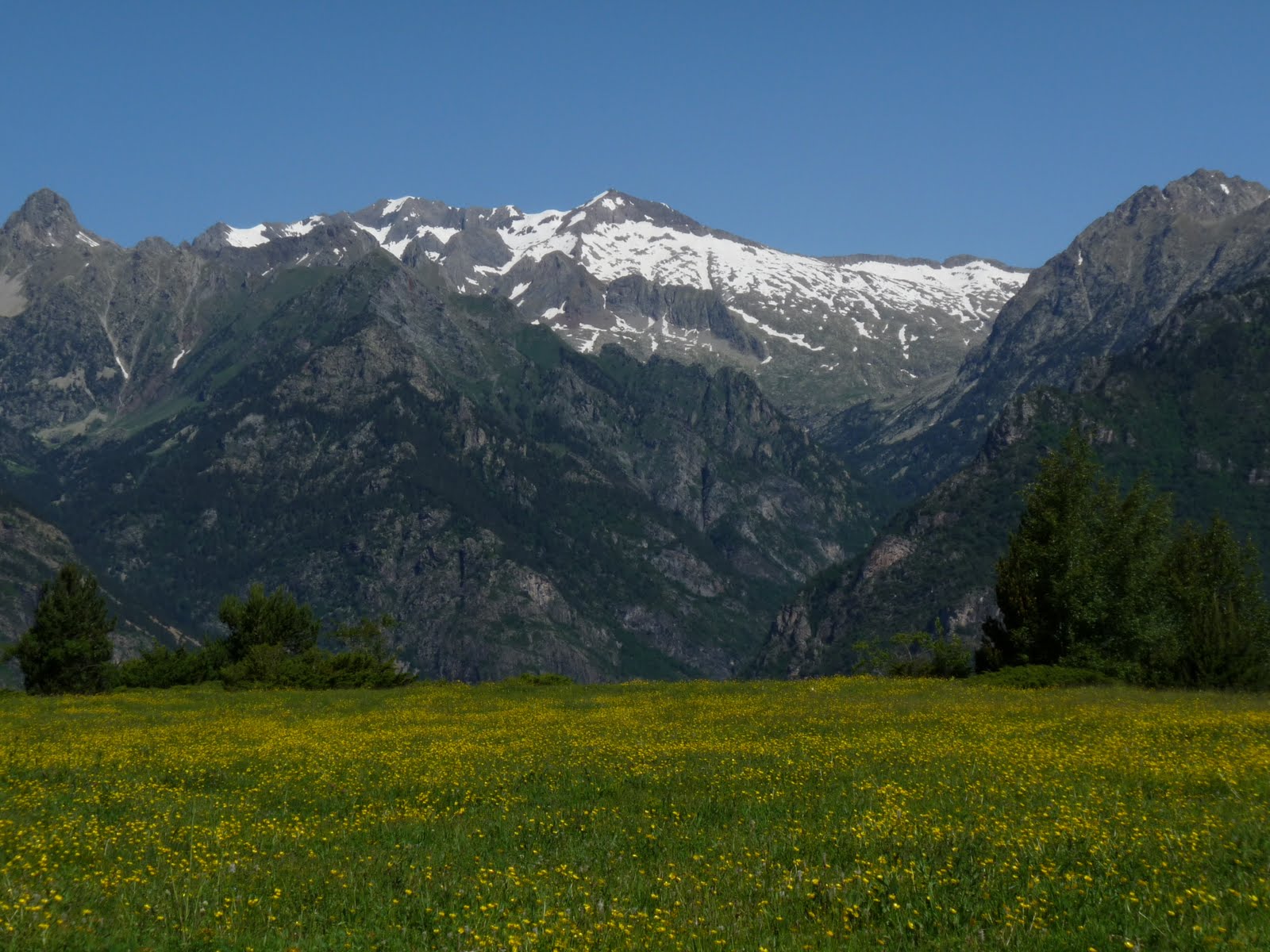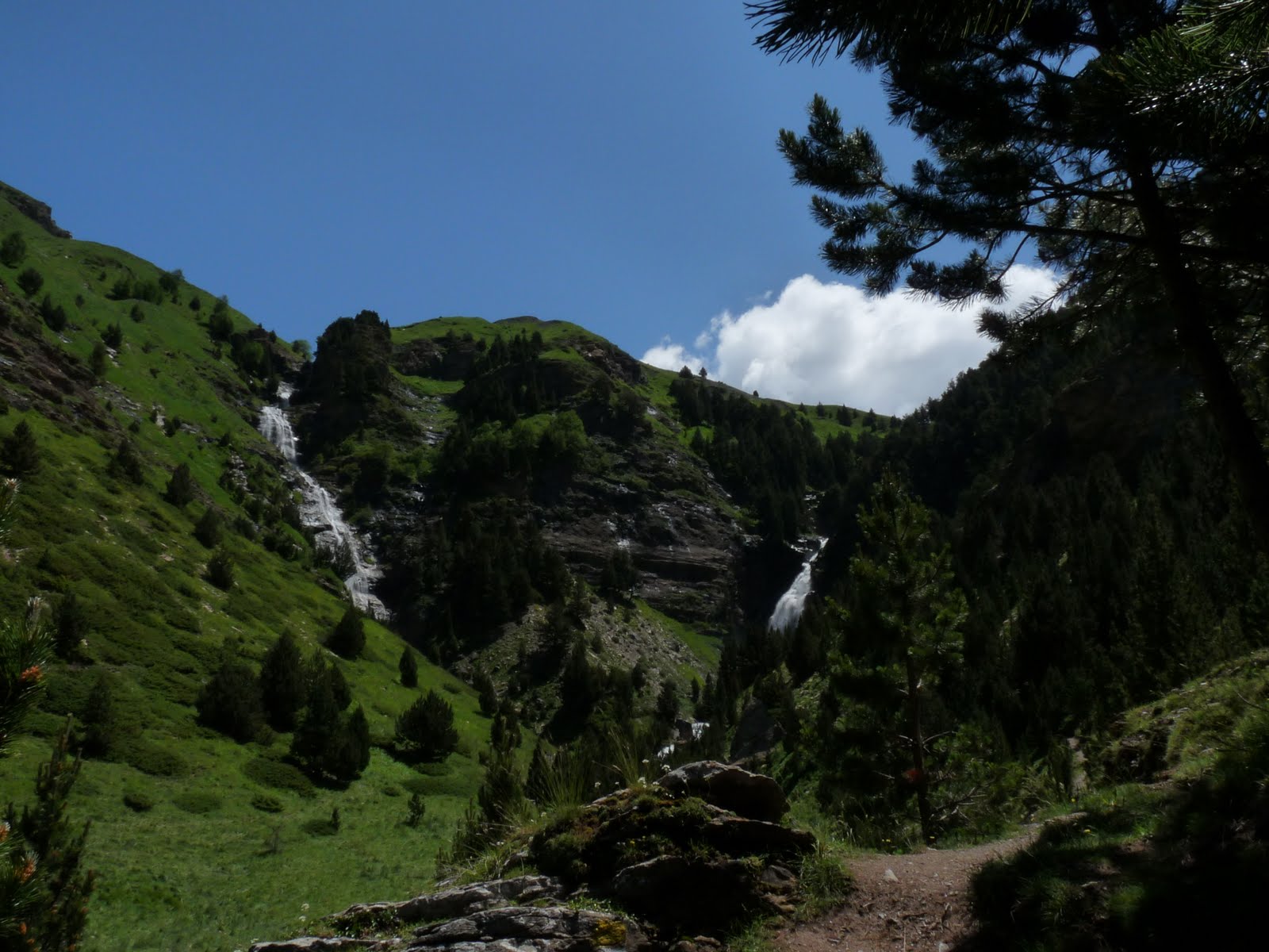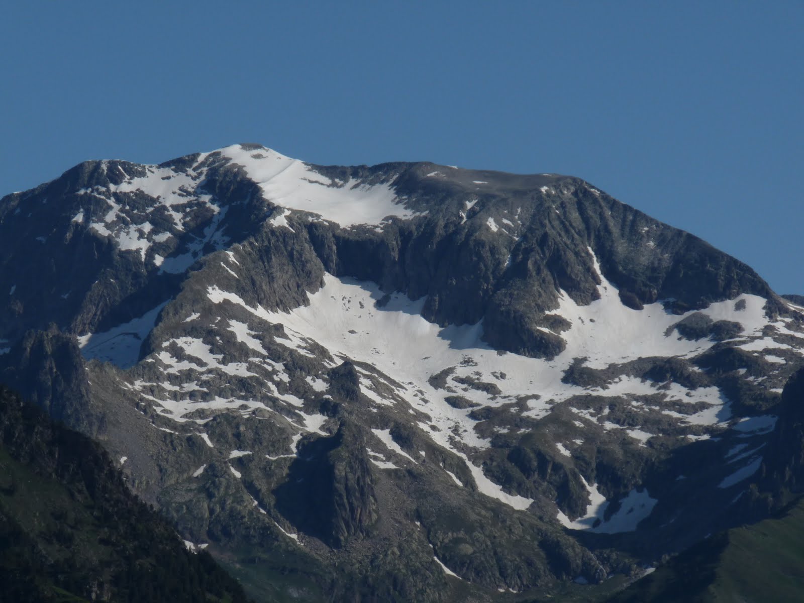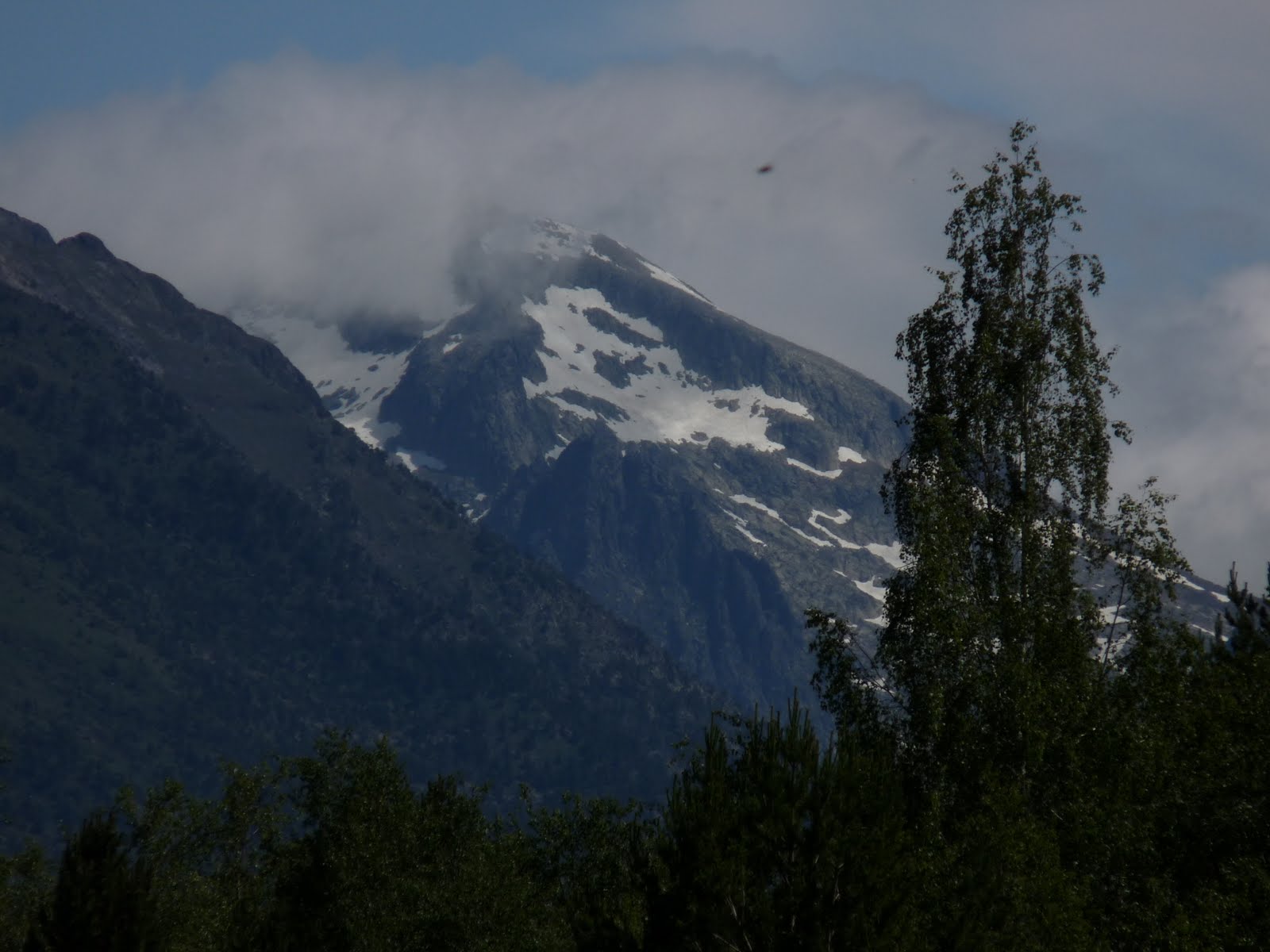 Vistas desde el Camino del Solano de la zona de Posets y Perdiguero, Ardonés, Gallinero y Pico de Cerler, recordando una de las bajadas realizadas este invierno en uno de sus corredores.