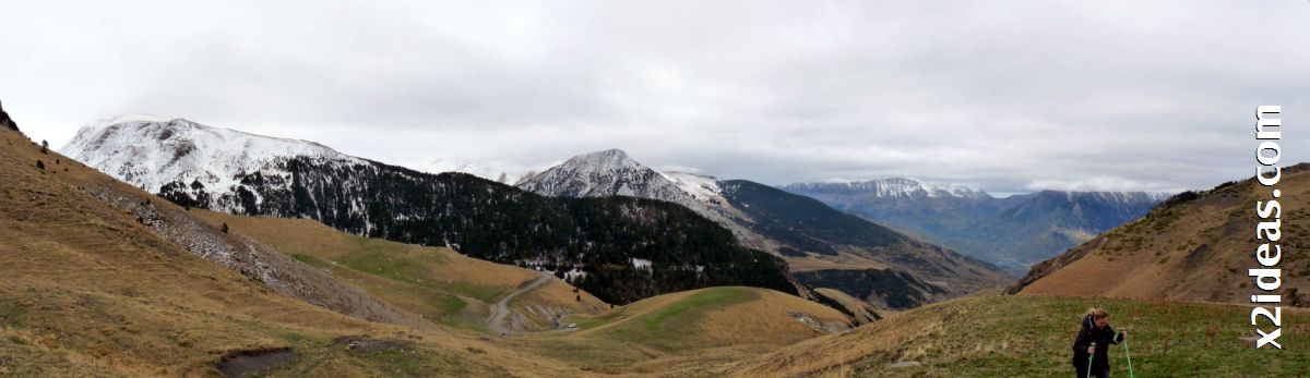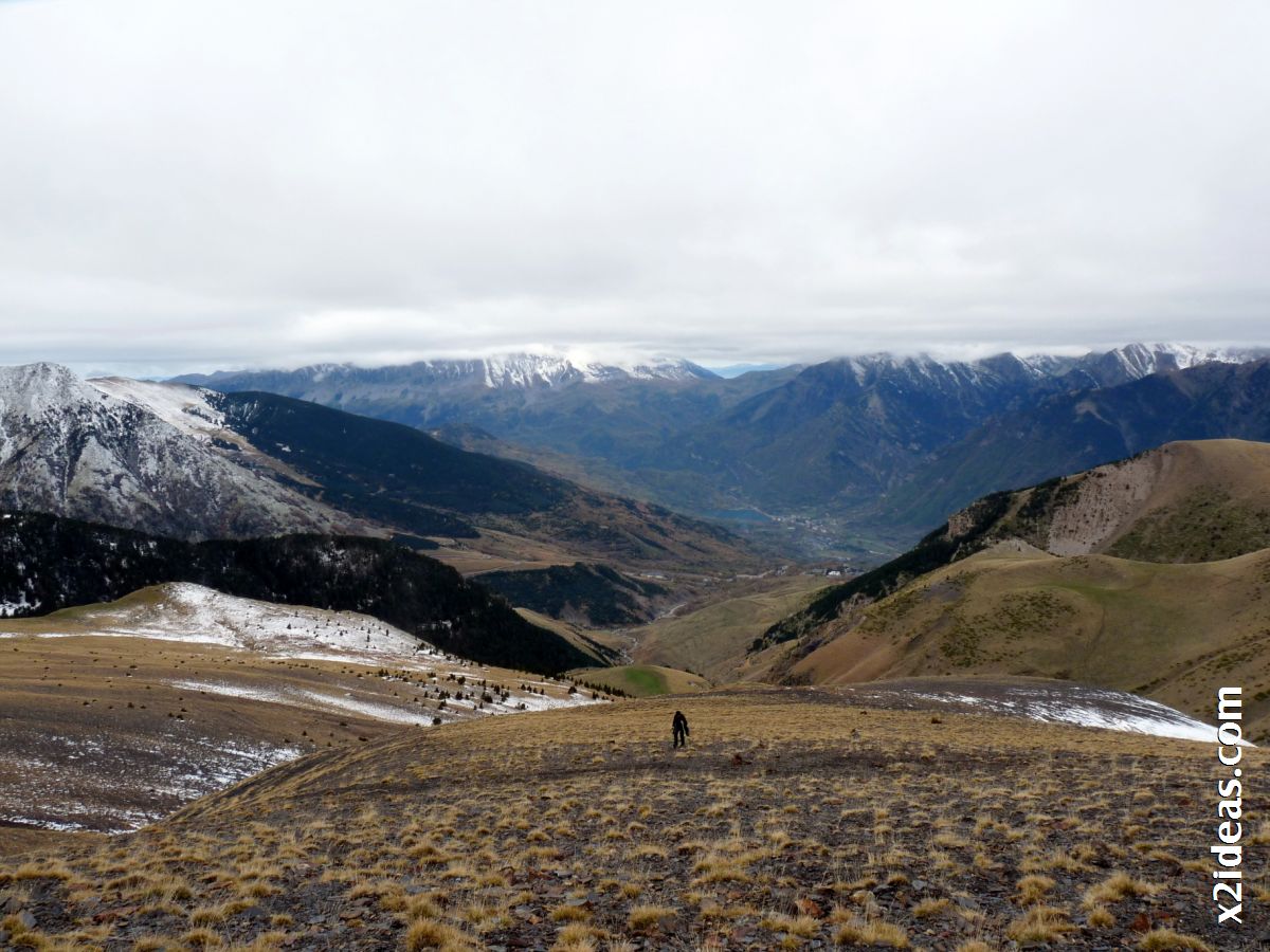 | Bajada de Ardonés desde los picos de Castanesa y Pasolobino, bastante cubierto, pero aún falto de nieve. |