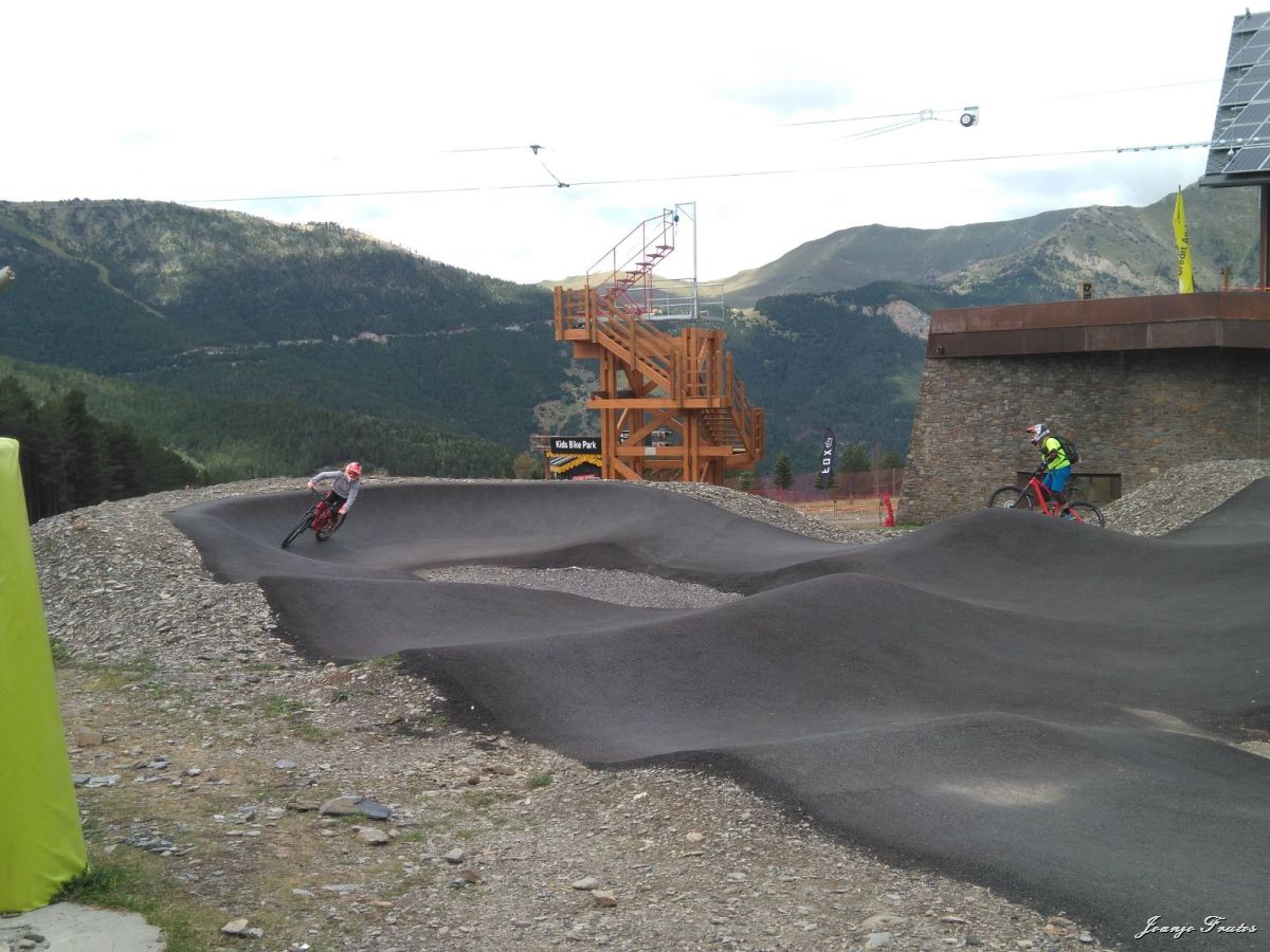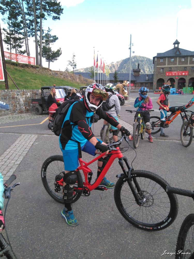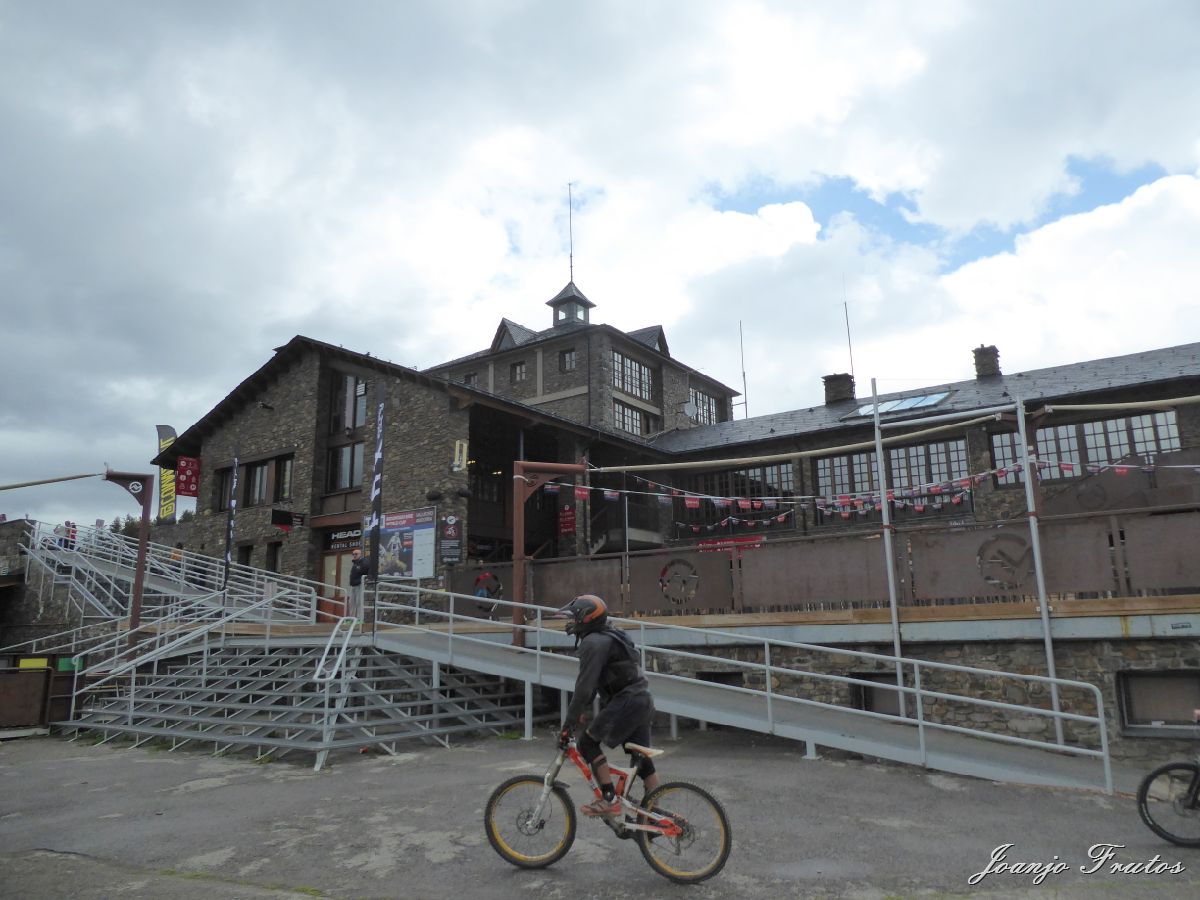 VallNord, que pasada, funicular desde La Massana y tres telesillas abiertos para realizar un plano de pistas con distintas dificultades que nos ha hecho recordar mucho las sensaciones del esquí, indescriptible las subidas de adrenalina que notamos en cada bajada y más yo, que llevo solamente 5 días sobre una bicicleta desde que era muy joven.