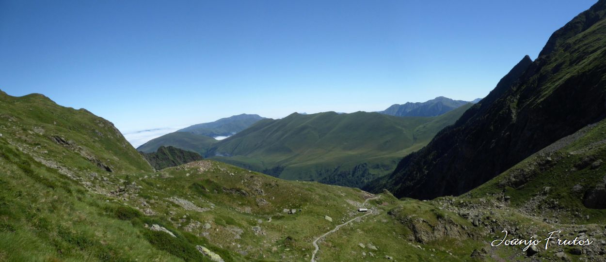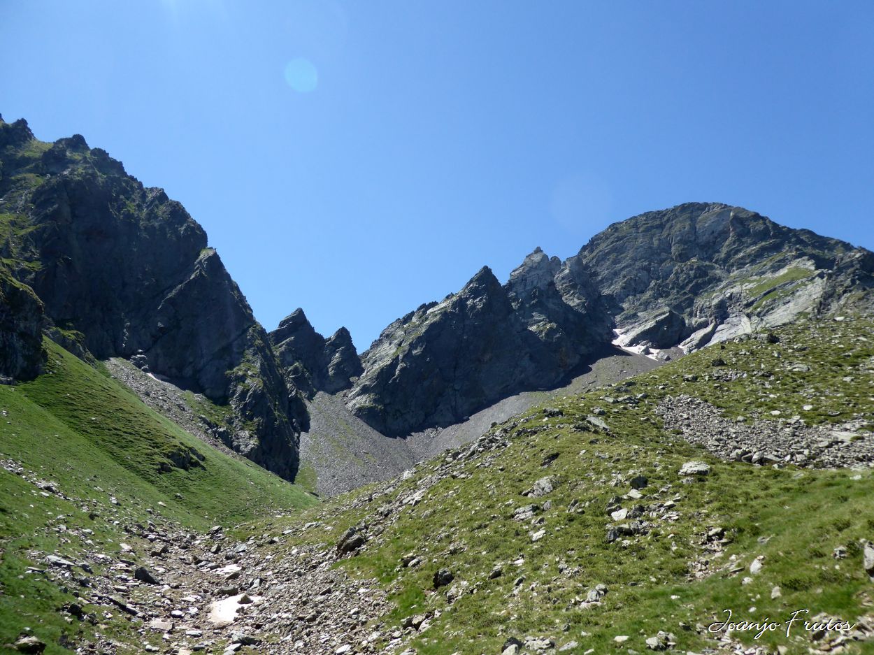 Paseo por Francia desde Llanos del Hospital, pasando por el Portillón de Benasque y a disfrutar de los pequeños lagos franceses, pasando por el pequeño refugio que hay al lado de los Boums du Port, luego nos hemos dejado seducir por la euforia y hemos seguido unas cetas muy bien marcadas y nos hemos encontrado en un valle cerrado y no hemos querido investigar si había salida, presidía este vallecito el pico de la Mina. Pues nada, media vuelta y para casa, precisamente donde se había quedado el mapa.