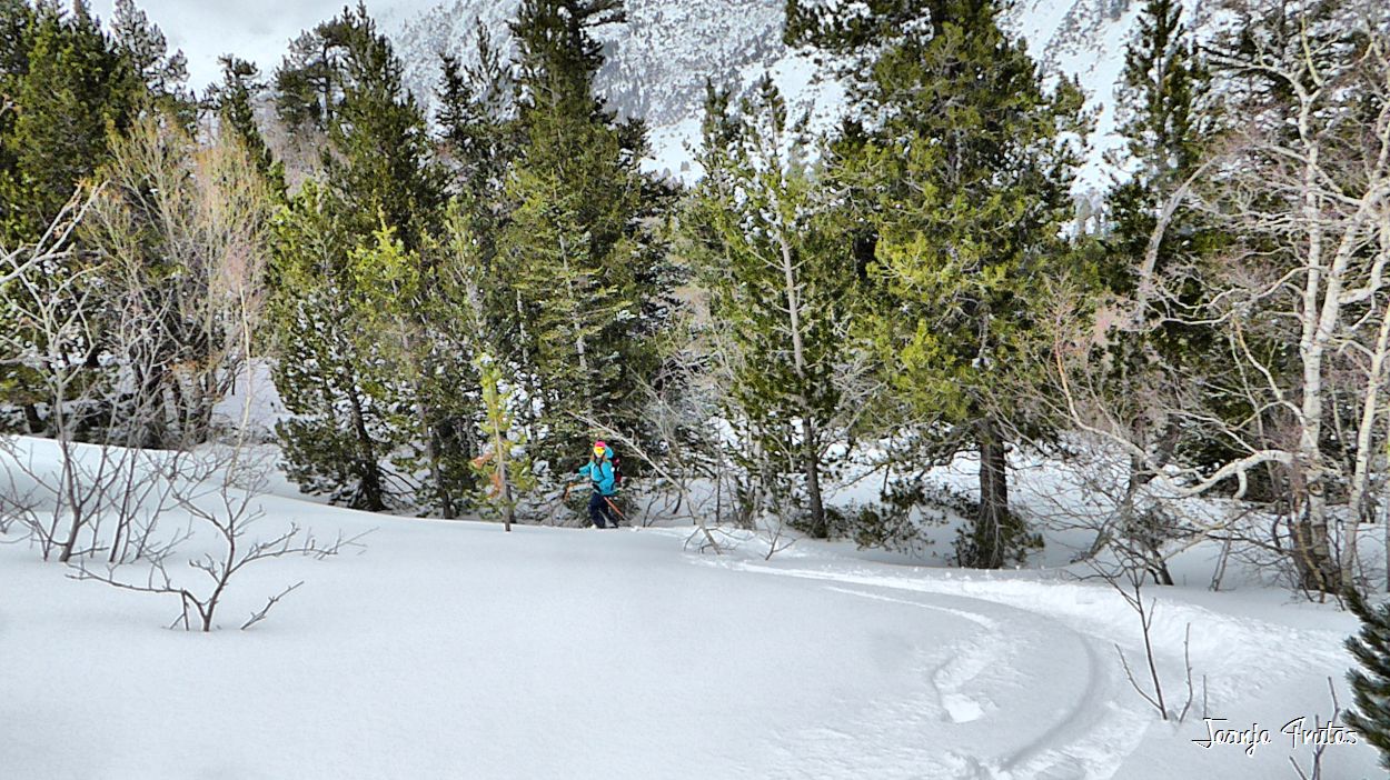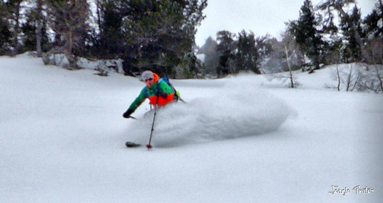 Empieza abril y tenemos polvorón en la zona de Llanos del Hospital, pues nos adentramos a los bosques de Paderna a probar como se deslizan nuestros esquís con estas sensaciones de flotar.