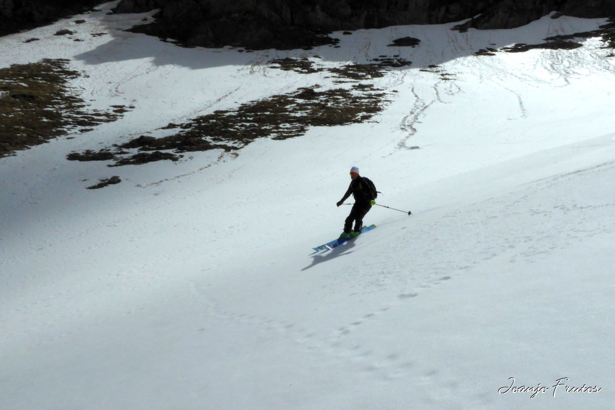 En altura ha habido un tímido rehielo, zetas y porteo hasta que en las paredes no hemos querido arriesgar más y hemos descendido esquiando y firmando en la nieve.