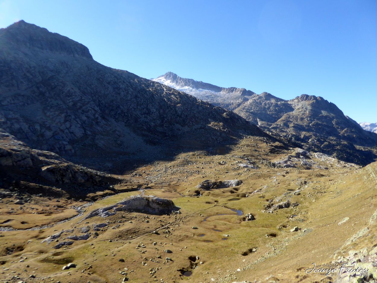 Excursión entre «trail-running» buscando a unos amigos que habían empezado antes y senderista ocasional cuando los hemos encontrado en el Forau de Aigualluts, desde entonces cómoda ascensión hasta el Coll de Toro y vistas a Artiga de Lin, ya en Vall d’Aràn. Fotos y más fotos del encanto de este ibón azul, con vistas increíbles del glaciar del Aneto, en breve estará vestido de invierno totalmente.