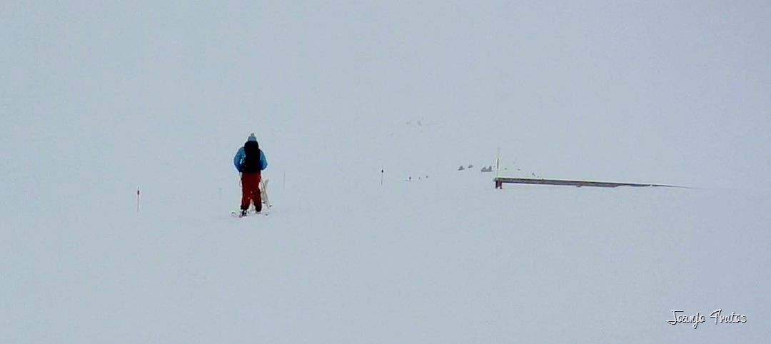 Bajada épica, difícil por la cantidad de capas y humedad que tiene la gran cantidad de nieve acumulada y otra vez luz plana, sin relieve a la vista.
