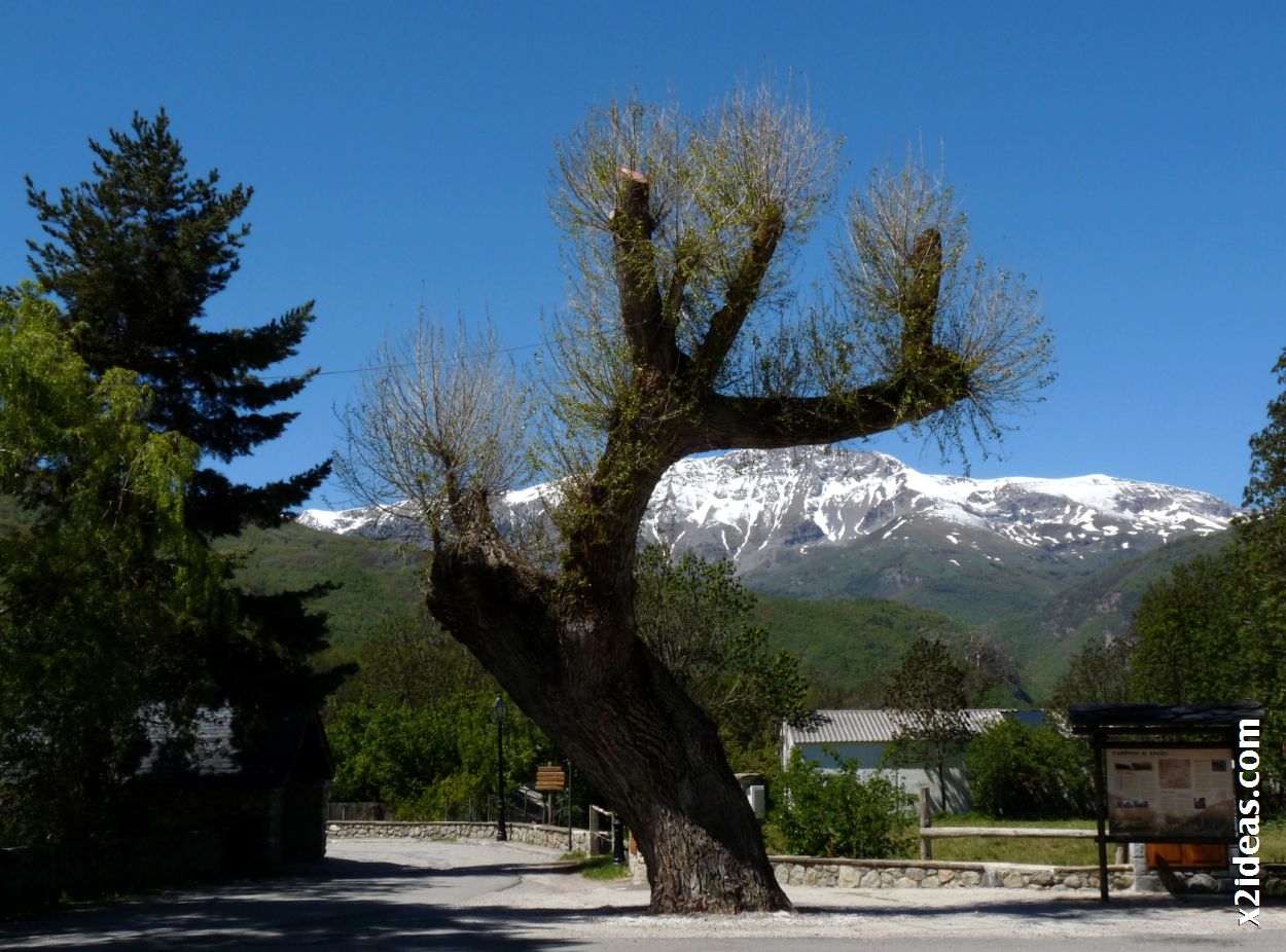 | El freixe y al fondo la nieve de las Tucas de Ixeia. |