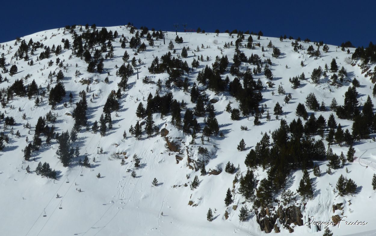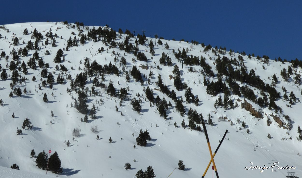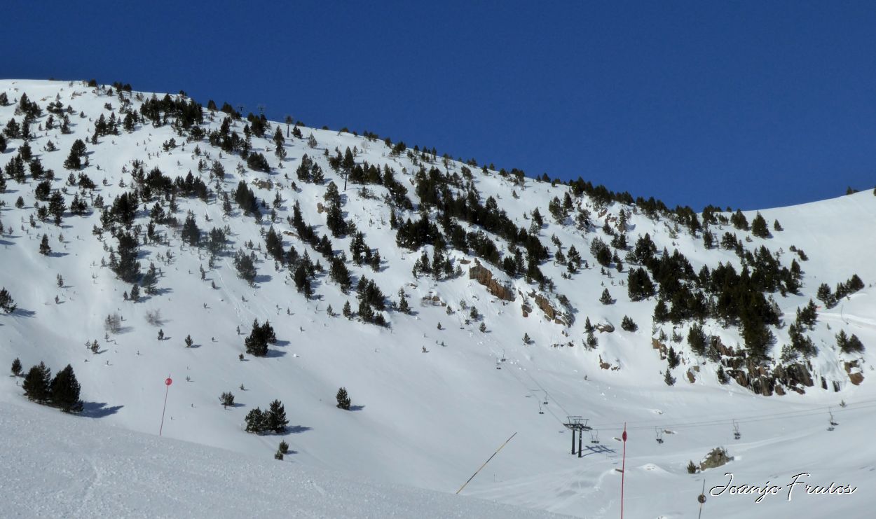 Tras bajar por la falda del pico de Cerler, entrada por la Solana, la mejor bajada del día, con las precauciones de no romper la primera capa, se ha dejado esquiar bien, Las caras de Ibones y Olla estaban tramposas, no podías fiarte, la pista de la Olla, calidad polvo y muy bien peinada.