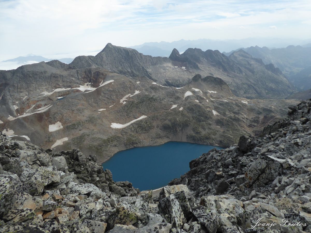 El ibón de Blanco de Literola desde el pico anterior a la cima.