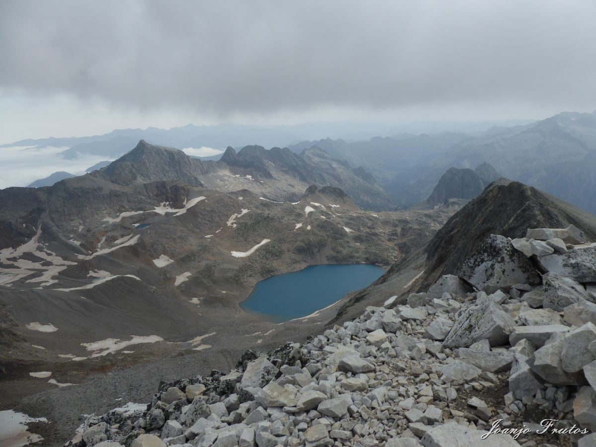 | El ibón de Blanco de Literola desde el pico anterior a la cima. |