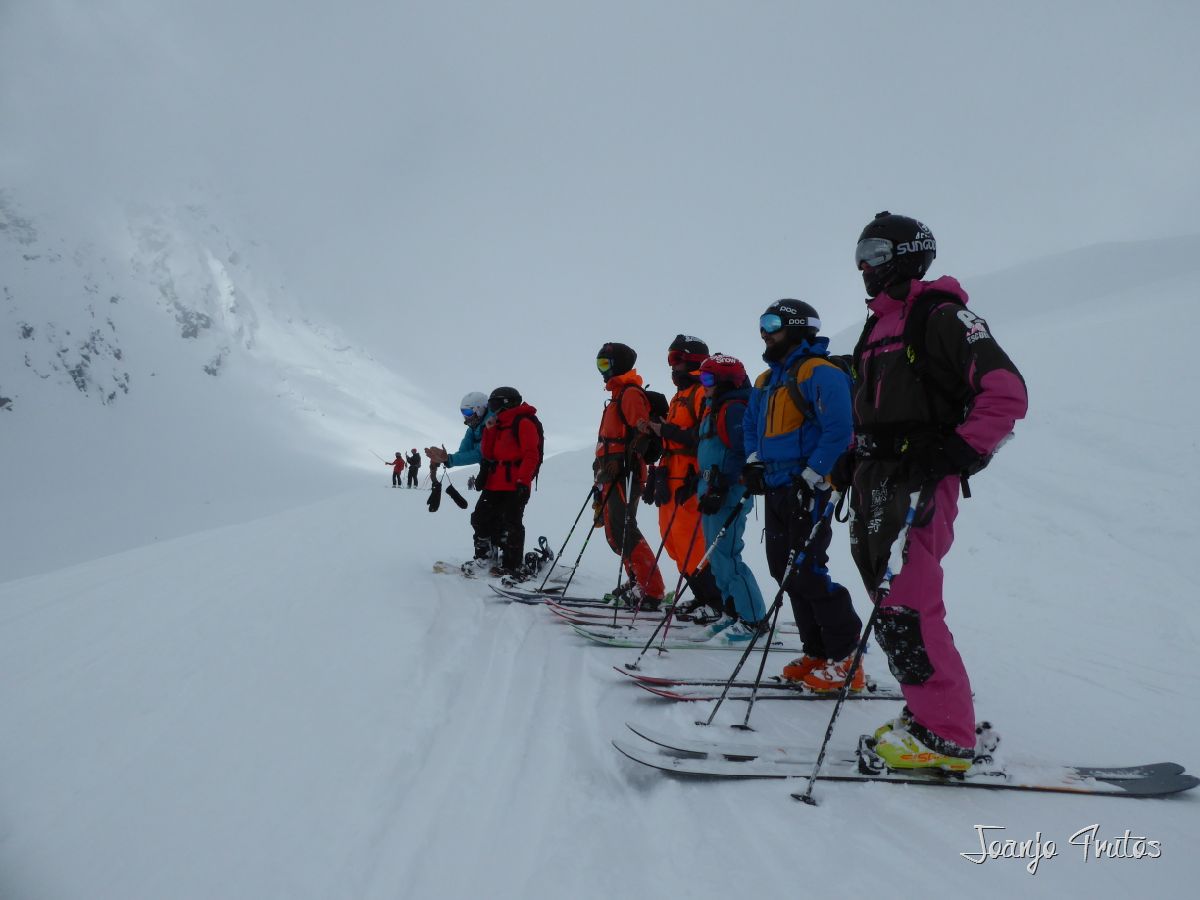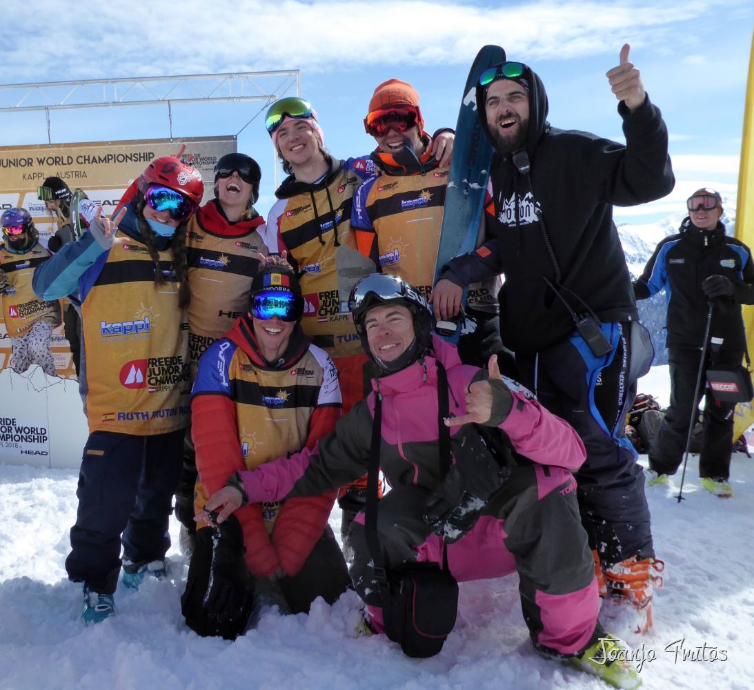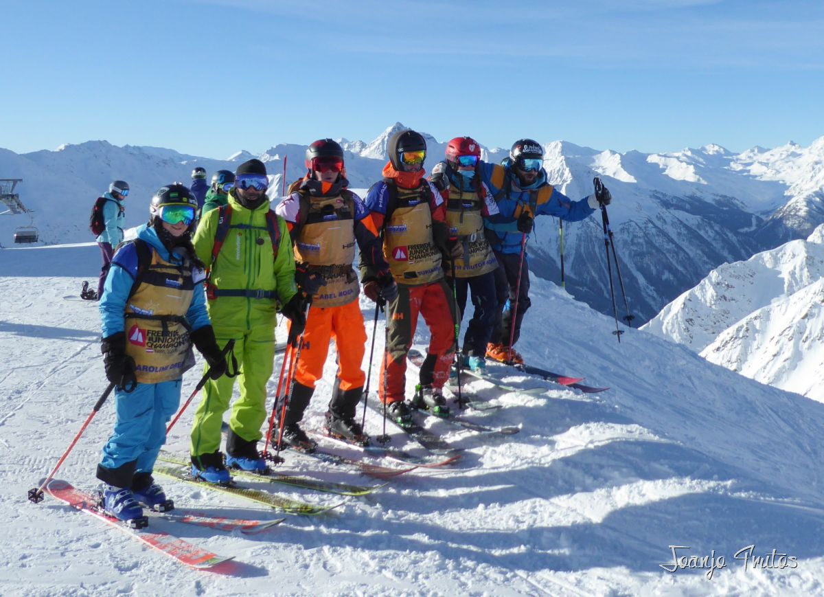 Freeride Junior World Championship, en este caso cuatro españoles y un andorrano, que nos conocemos de esquiar en las mismas estaciones y coincidir en diversas pruebas de la competición, pero ser la representación de España y con cuatro participantes es bestial.