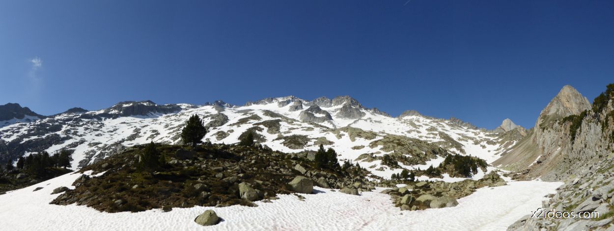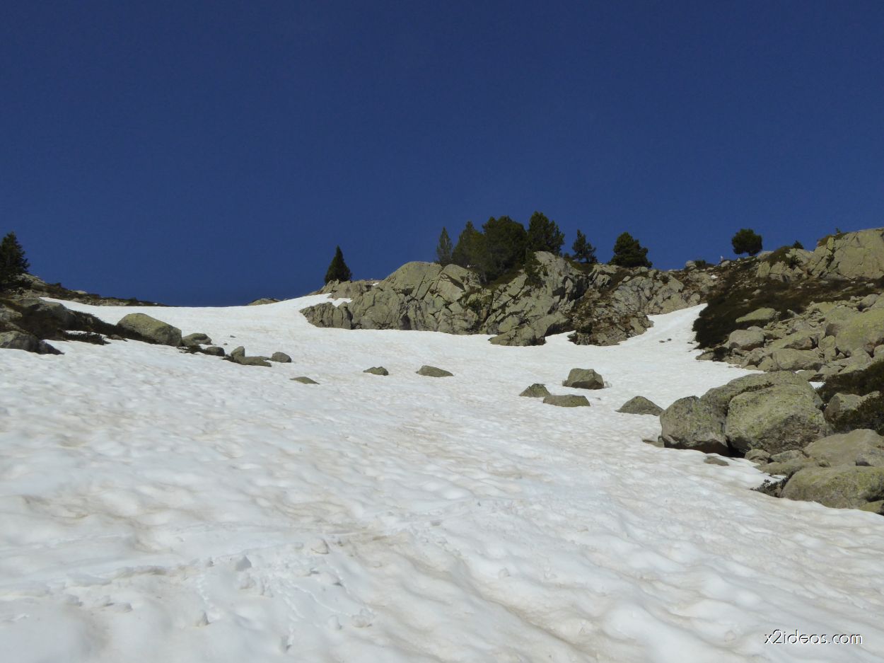 Esto último hubiera sido posible si mi torpeza no hubiese perdido las gafas de sol, mientras quitaba la mochila para calzar los esquís, un agujero de esos que pasa agua por ellos y mi pericia han hecho posible perderlas haciendo canasta y la corriente ha realizado el resto, tras varios intentos para encontrarlas, he desistido y se ha acabado mi intento de Maladetas, no había que abusar del sol en los ojos.