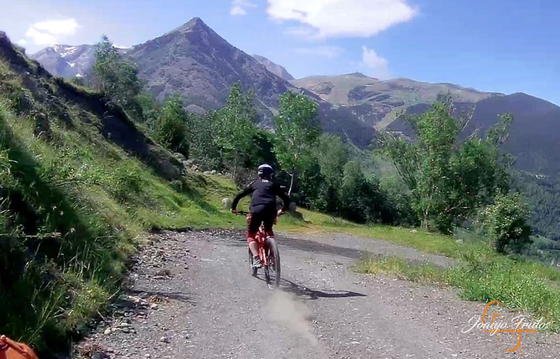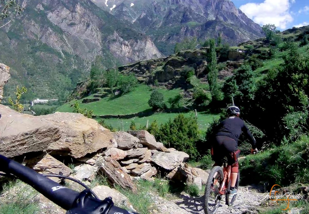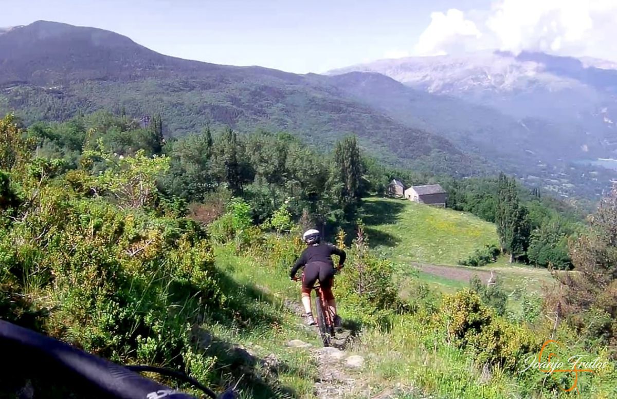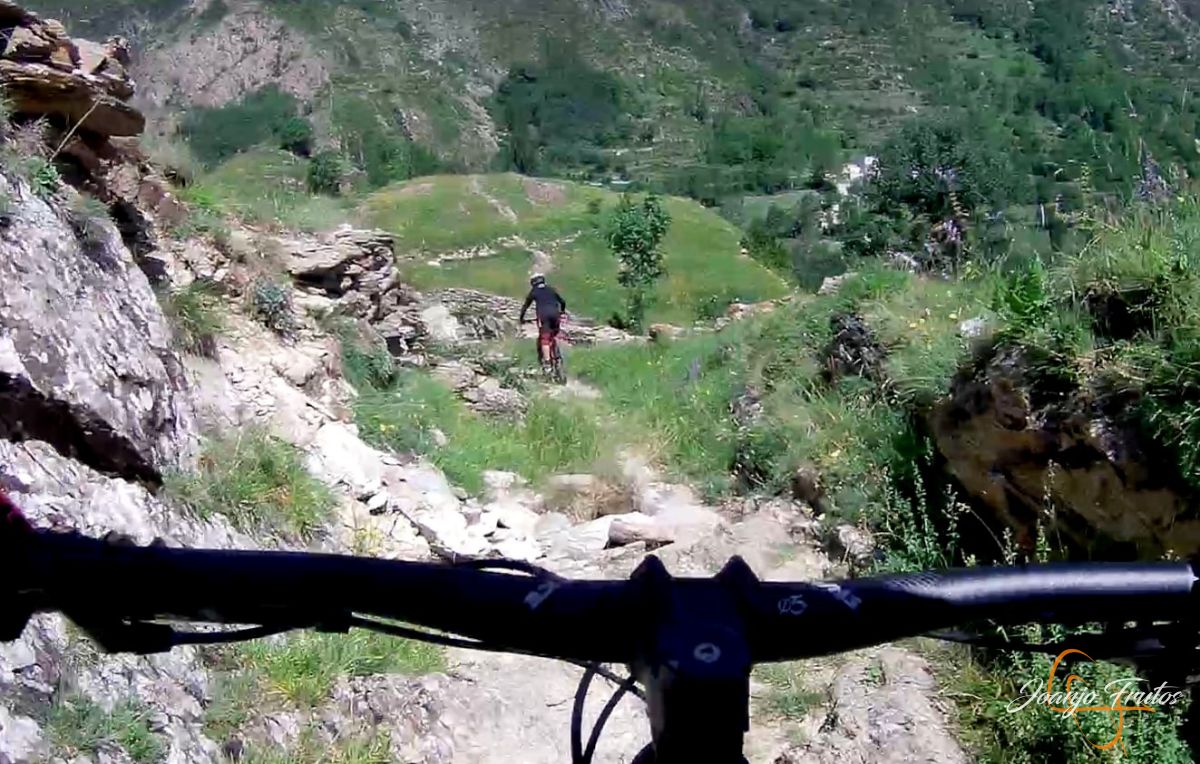 Esta vez hemos realizado una larga bajada de más de 800 m de desnivel, el último sector de la ruta 13 de la Mina, la bajada de la Casa de la Mina a Cerler y el camino del Castillo a Benasque. Enduro-descenso disfrutando del verano.