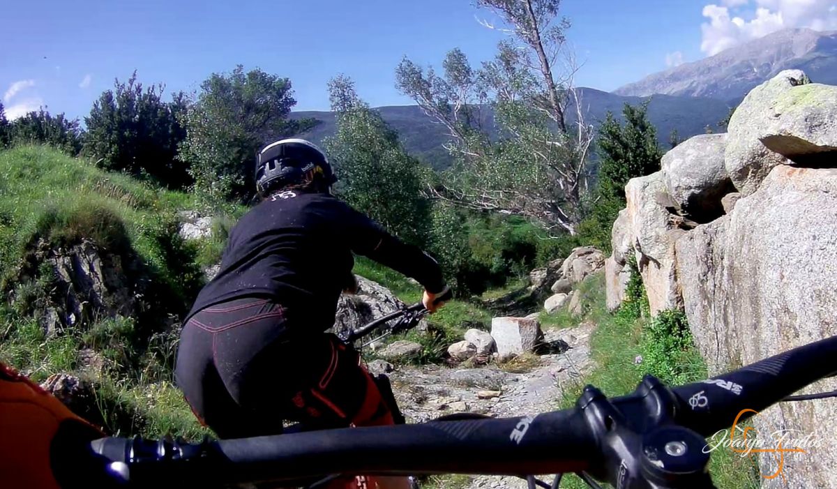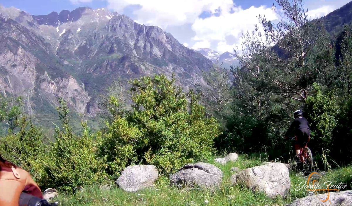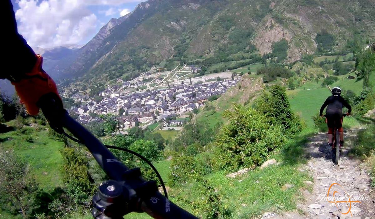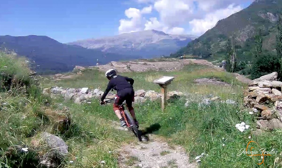 Esta vez hemos realizado una larga bajada de más de 800 m de desnivel, el último sector de la ruta 13 de la Mina, la bajada de la Casa de la Mina a Cerler y el camino del Castillo a Benasque. Enduro-descenso disfrutando del verano.