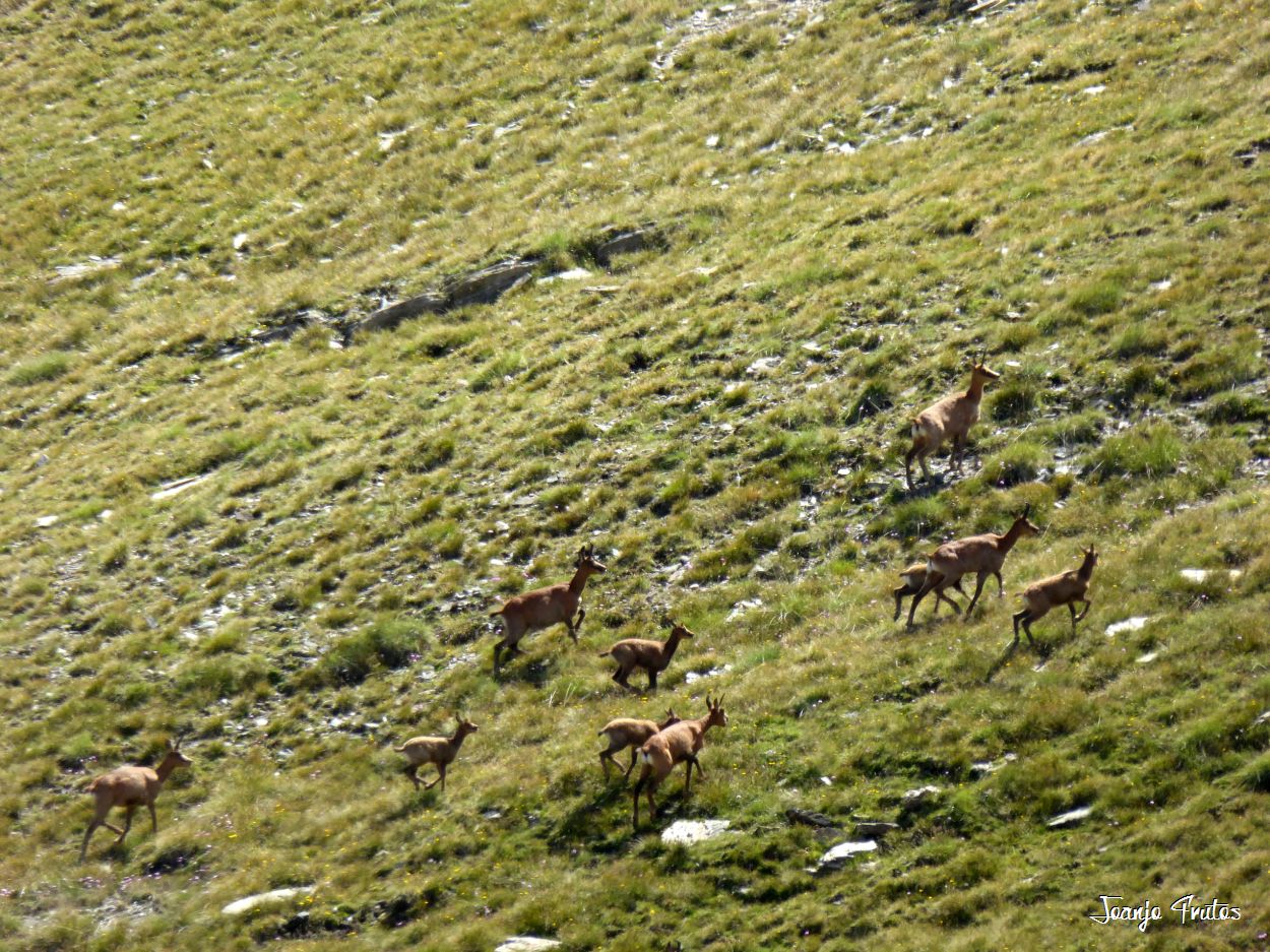 Subida rodeados y vigilados por sarrios, una vez hemos dejado las vacas en el río de Ardonés, caballos cerca de Estiba Freda y perdices nivales que nos han asustado, ahora de color parduzco, pero con las plumas inferiores blancas.