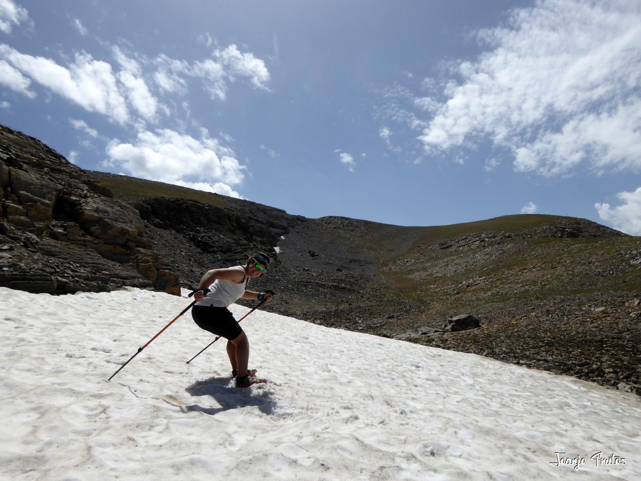Hacía días que habíamos abandonado la excursiones, pero el atardecer de ayer nos inspiró, y ha sido levantarse y ponernos en marcha, realizar nuestro particular Kilometro Vertical, casi copiando el recorrido de travesía, pero atravesando el pico que normalmente sorteamos, para llegar a la cima, el turonet de Roques Trencades, visualizando nuevas líneas, ya que en invierno a veces no nos atrevemos a investigar.