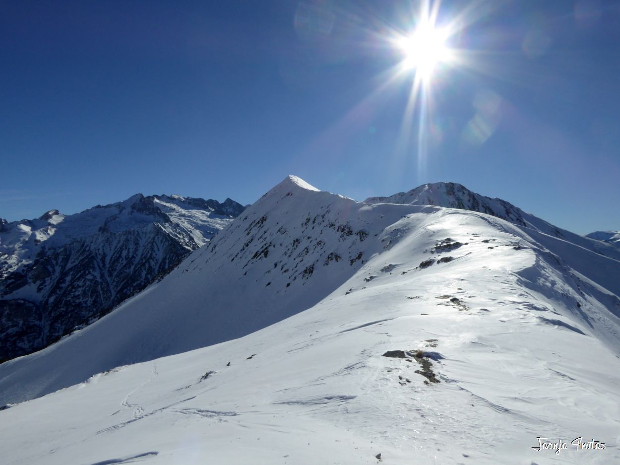Empezamos el día aparcando en la entrada de Literola, subida a patita hasta pasar el bosque, calzamos esquís y empezamos a ascender rodeando los piedras, hasta pasar el collado de los dos árboles secos, a partir de allí la nieve es continua y ya con un grosor considerable, pasamos el puente, la cabaña y hasta la frontera de los dos valles, Estós y Literola, hasta la Tuca del Frontonet y luego Fites de Perdigueret, nieve hay, cambios de esta también, diversión y ejercicio con muy buena compañía, otra salida con Manu.