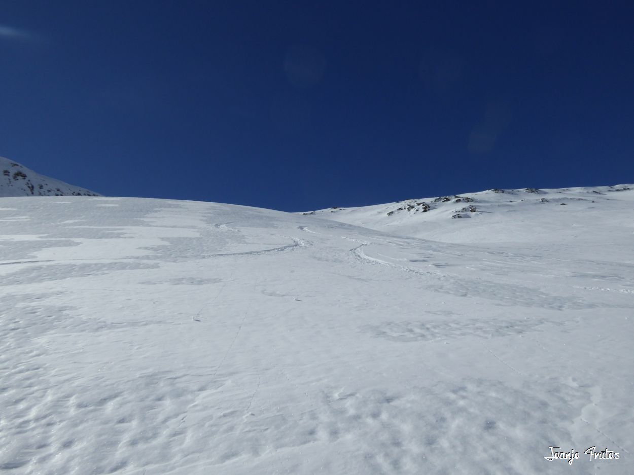 | Desde el pico de donde veníamos, huellas de subida y de bajada. |