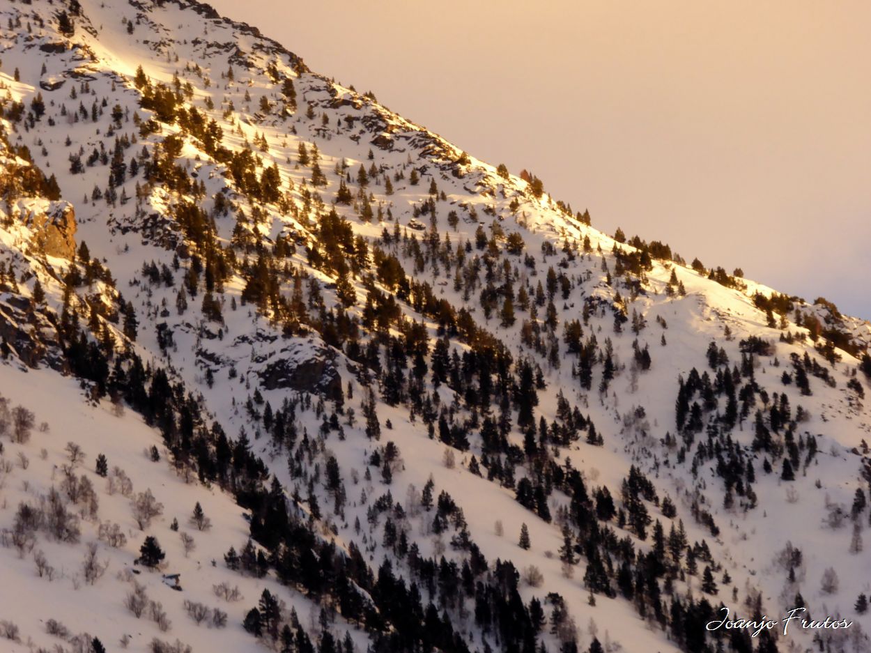 Hoy día de fotos y pala, nieve blanda de las últimas lluvias, pero los picos han vuelto a pillar nieve. También han caído los tradicionales aludes del Valle de Benasque.