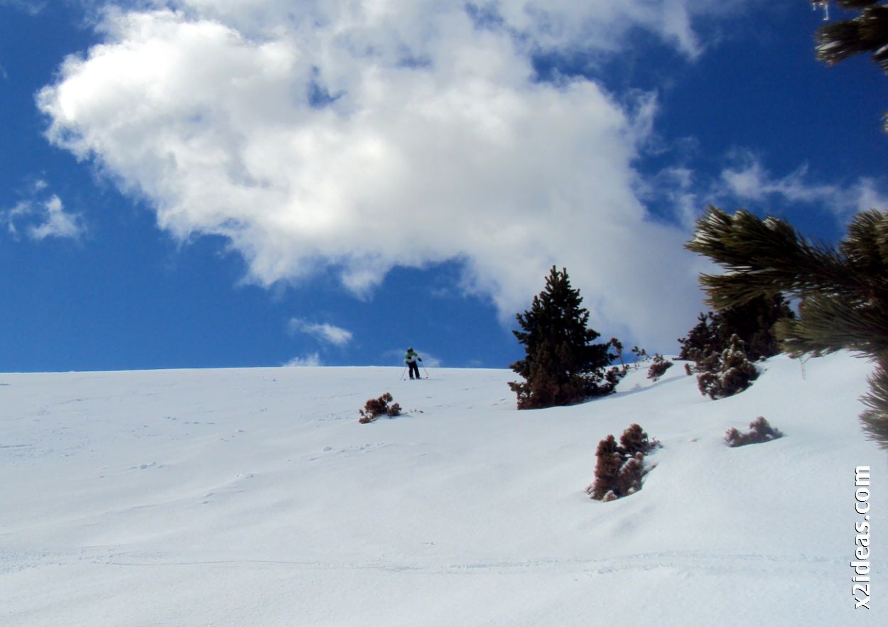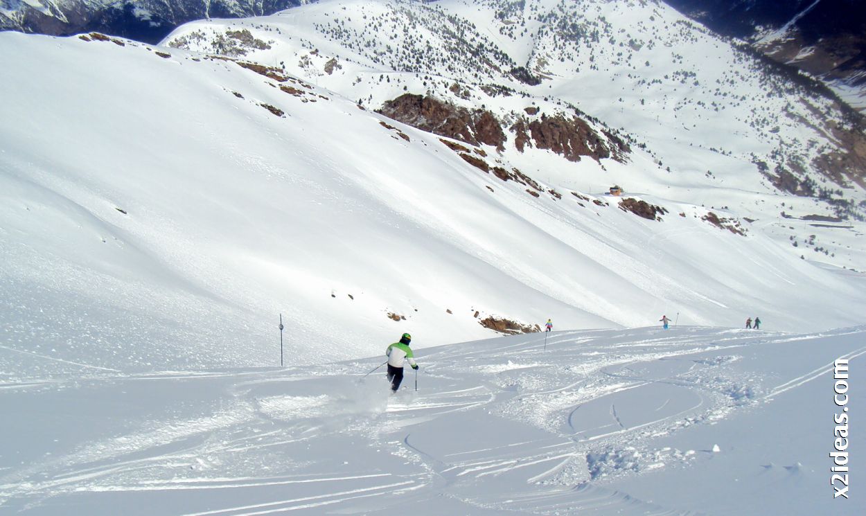 Hoy hemos roto la rutina, empezar por las zonas altas era un acierto y más con el regalito que nos había dejado el cielo, acompañado de Ruth, que hace tiempo que ya me da caña y más cuando ha sido un mano a mano de que pala abrir primero. Buenas sensaciones y piernas ardientes, repetición de Marmotas Non Stop (alto y bajo), Canal y Tempestades, aunque enseguida nos hemos quedado sin sitio para firmar y eso es el carácter de Cerler, «raya todo lo que puedas antes de que te lo rayen.»