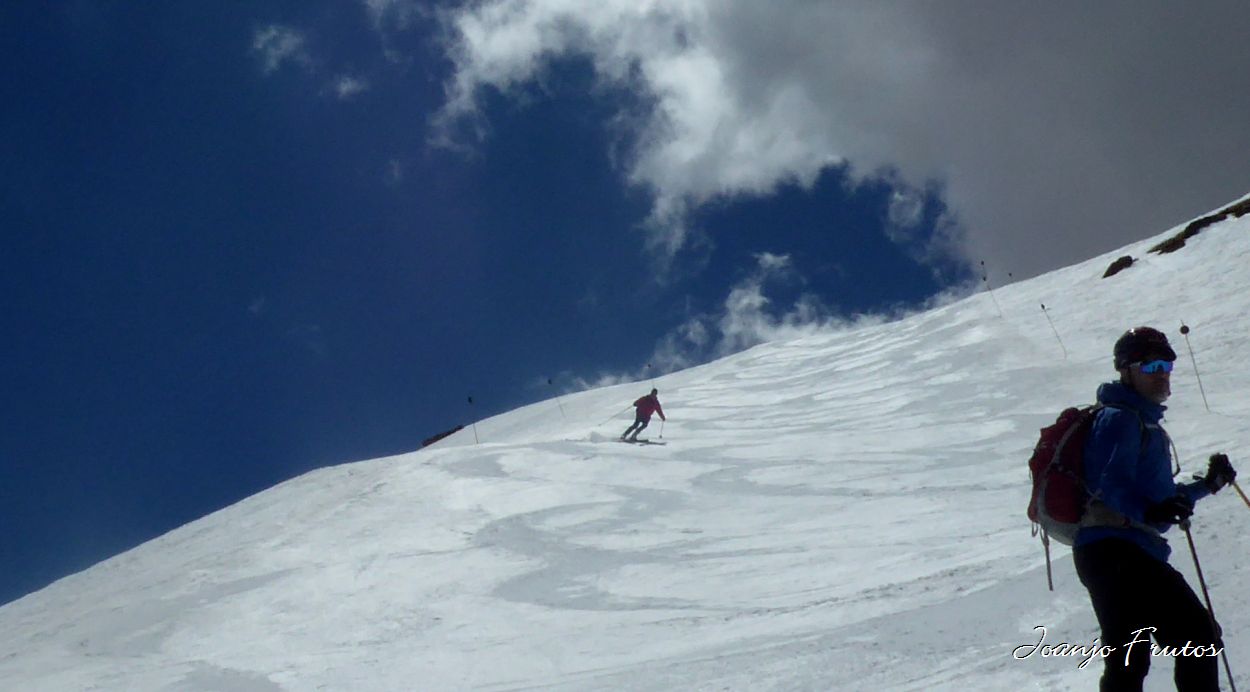 aventura de ayer, hoy tocaba visitar la cima de Gallinero 2728 m, espléndido día en el que quedamos tarde en Ampriu, pues esta noche han bajado las temperaturas, rozando grados negativos. Subida rápida y después de descansar en la salida del TS, hacemos cumbre, y como siempre nos encontramos con gente conocida, nuestro grupo parece que no tuvo bastante con ayer y hoy hemos disfrutado más, si cabe, la bajada con una nieve cremita en su punto, podríamos casi decir que mejor que cuando están pisadas las pistas.