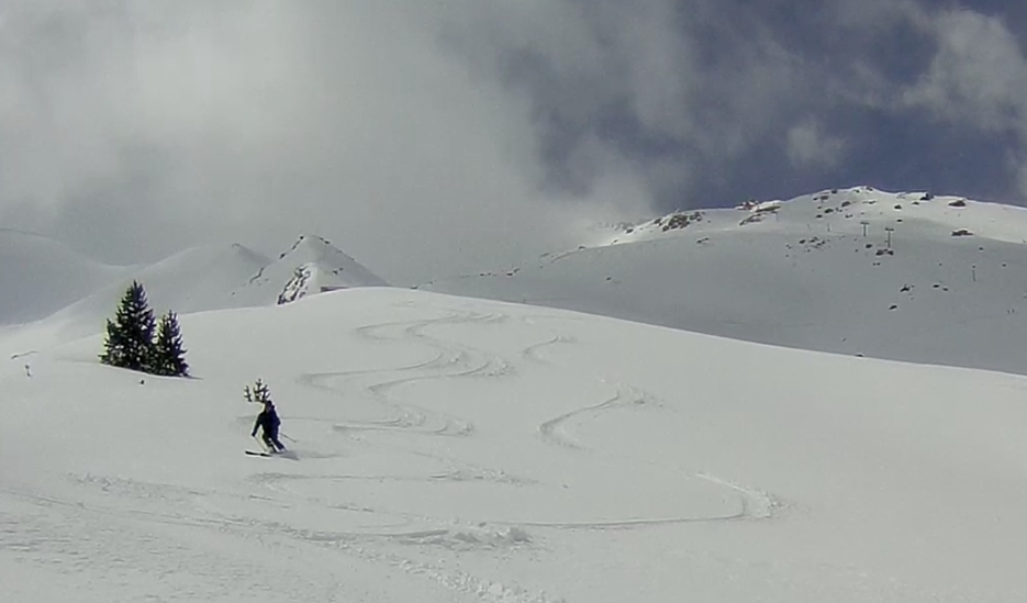 Bajada con una nieve increíble, mejor de lo esperado, polvorón y zona baja primavera – crema.