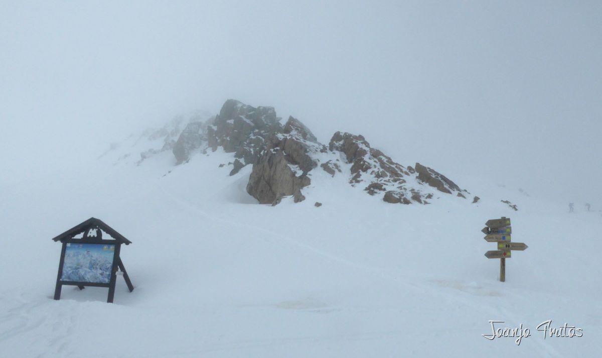Amigos, vecinos, conocidos, parecía una romería hacia la cima de Gallinero, empezamos con un solazo la subida y arriba se tapa, empieza a nevar y desistimos de hacer pico.