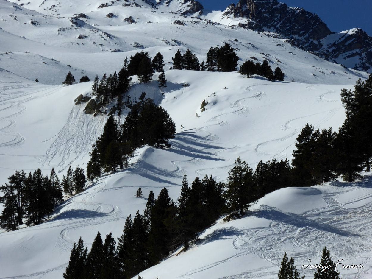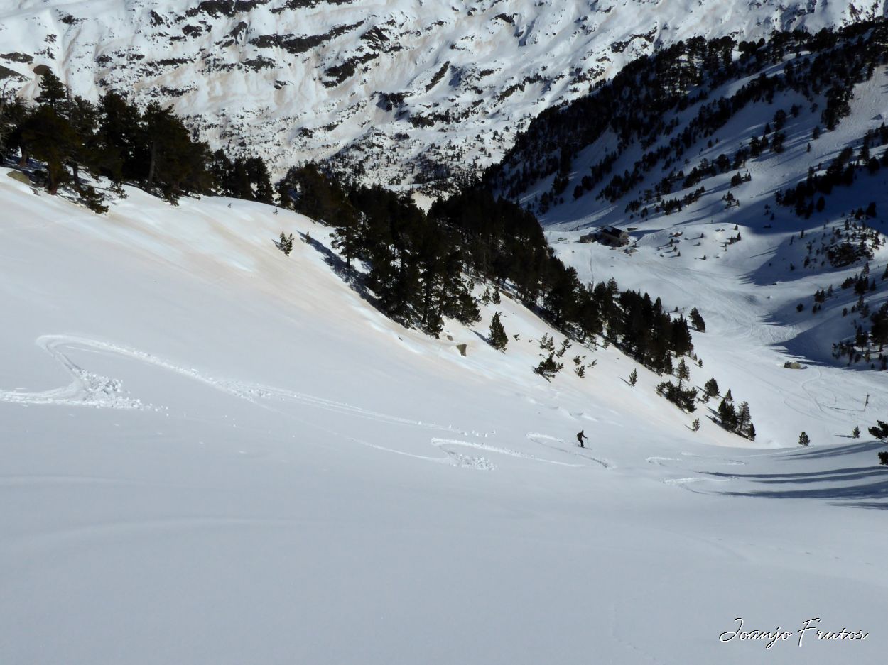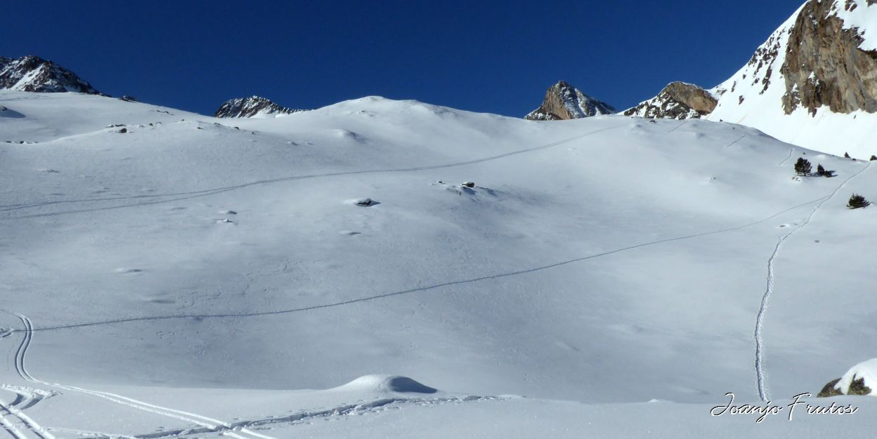 Hoy me ha acompañado Brian al que el año pasado le hicimos sufrir en su primer día de travesía, pero hoy se ha marcado unas líneas muy buenas en un rincón virgen llegando al refugio, bajando del ibón de Paderna.