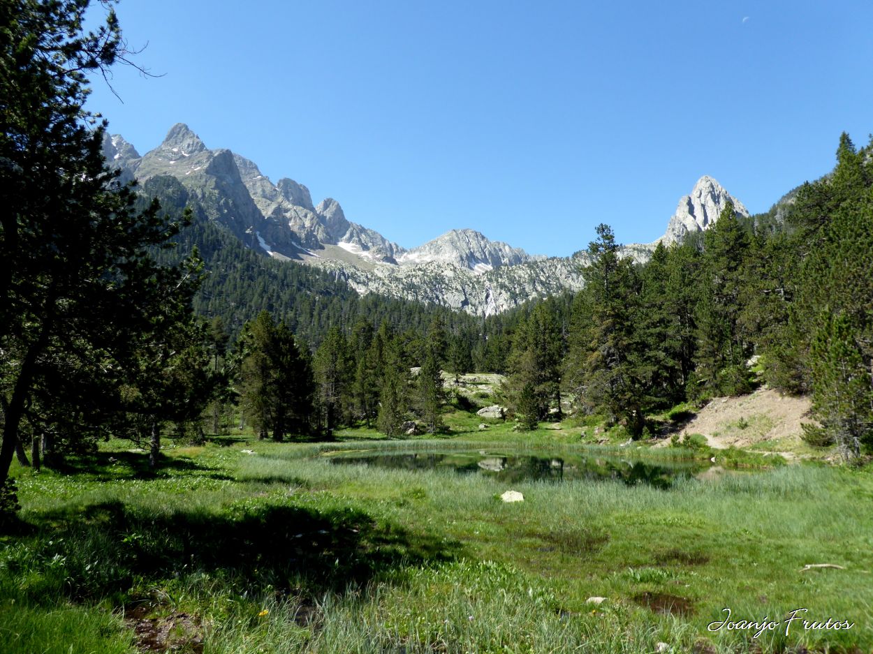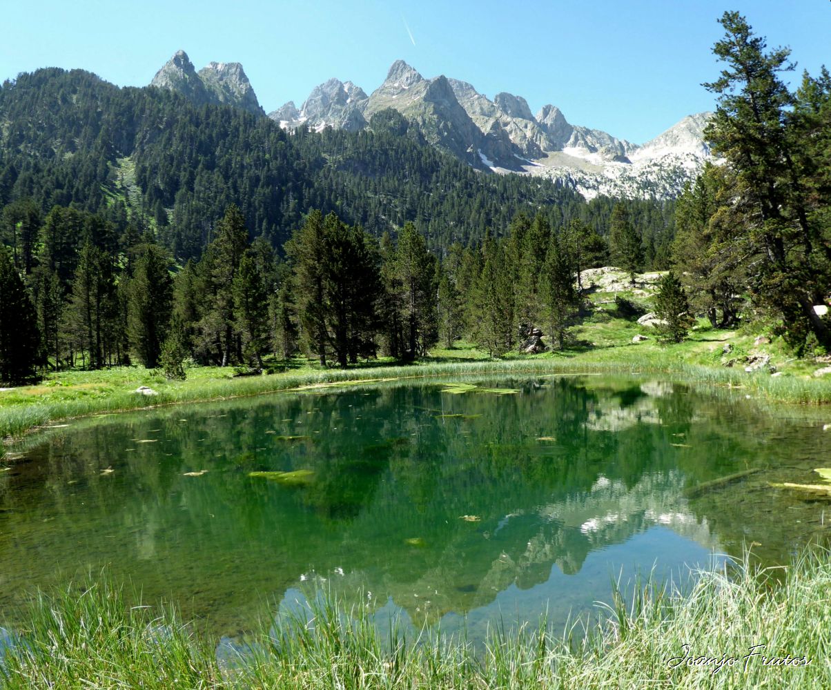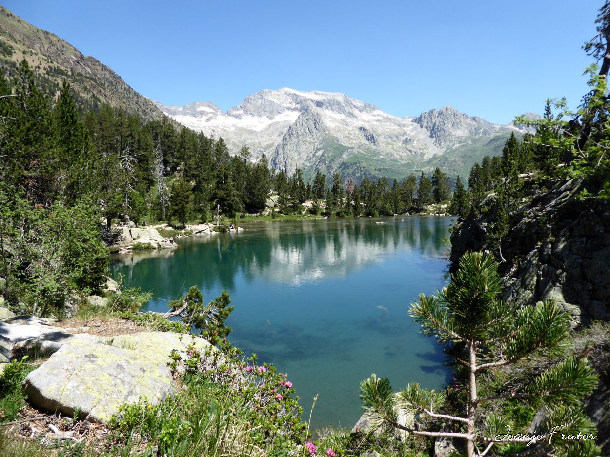El calor aprieta y una de las mejores formas para refrescarse es bañarse en un ibón, y el elegido hoy es de los que merecen sufrir la subida para contemplar el paisaje. Son un lujazo de vistas que nos transportan a una sensación de paz, tranquilidad y ni que decir cuando nos adentramos en el agua cristalina y fresquita. El Pirineo nos depara paisajes fantásticos y este ibón de la Escarpinosa (2020 m), rodeado de picos, como la Agulla de Perramó, Agulla de Ixeya y en lado por donde entramos el pico del Perdiguero ( 3.222 m).