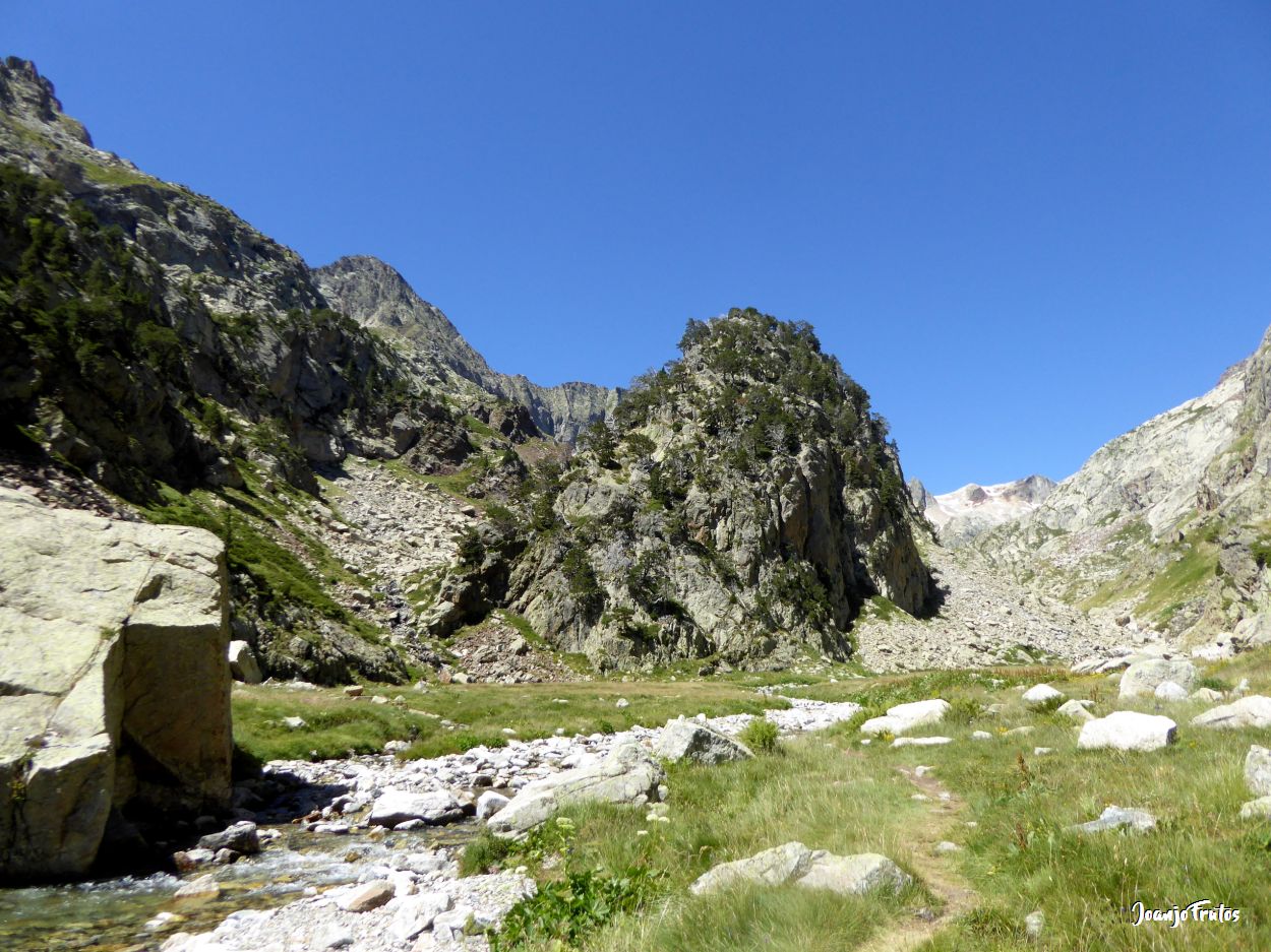 Corta y rápida excursión por el Valle de Remuñe, para quemar las copas de la noche anterior, la balanza ya indica que estamos cerca de la zona de alarma y hay que volver a quemar calorías, me cuesta más ahora que cuando hay nieve, pero a esta excusión le tenía ganas, porque la vez anterior pequé de novato y no los encontré hasta que miré hacia atrás ya muy cerca de la Forqueta de Remuñe, jeje.