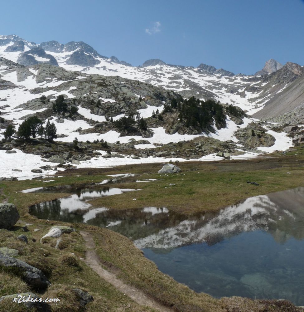 Esta excursión la realizamos cada año y es corta, y no muy transitada y más cuando todavía queda nieve, el ibón semi-helado le da un aspecto especial.