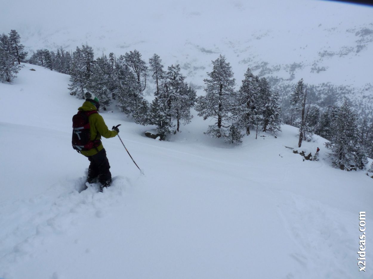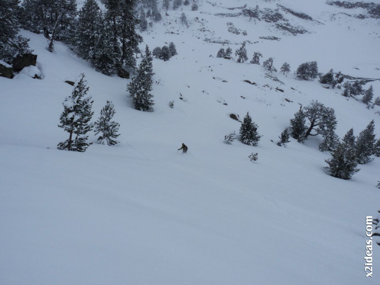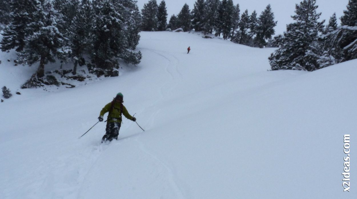 Una vez recuperadas fuerzas y con mucha envidia con los que se quedaban por La Renclusa y sus alrededores cargaditos de nieve nueva, entre 30 y 40 cms, y suelta, iniciamos bajada.