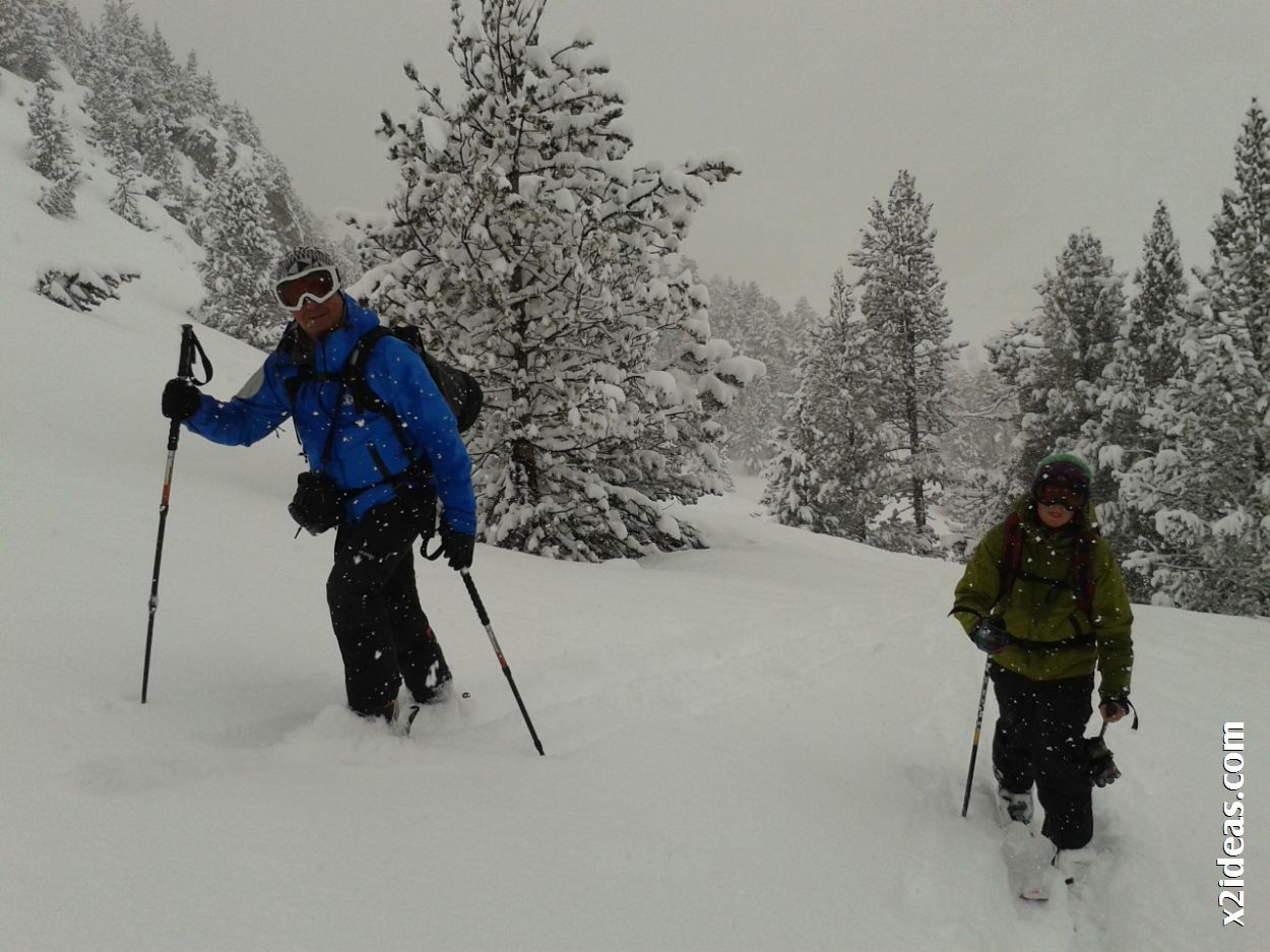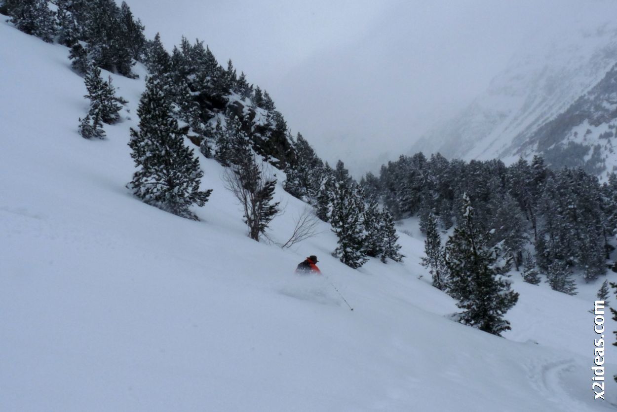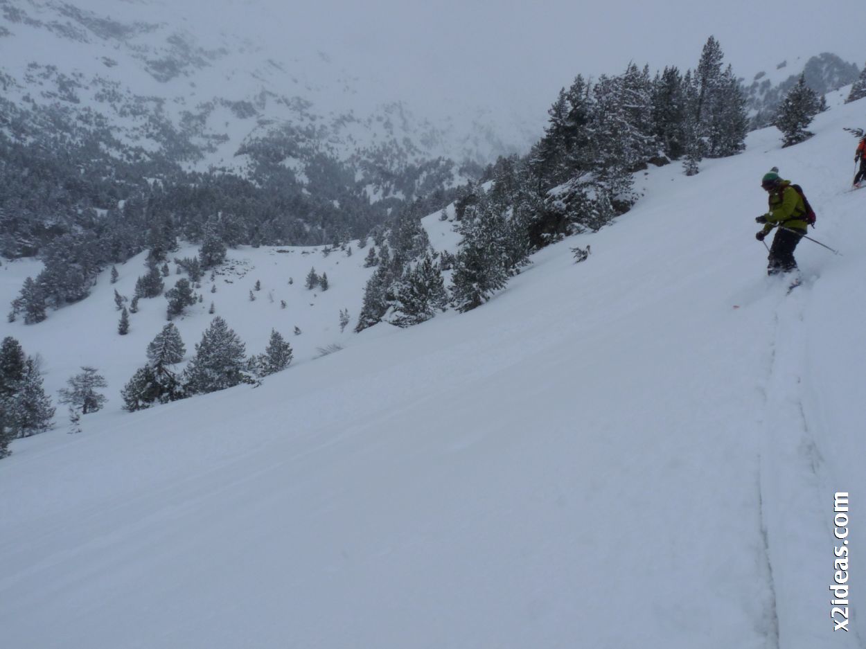 Una vez recuperadas fuerzas y con mucha envidia con los que se quedaban por La Renclusa y sus alrededores cargaditos de nieve nueva, entre 30 y 40 cms, y suelta, iniciamos bajada.