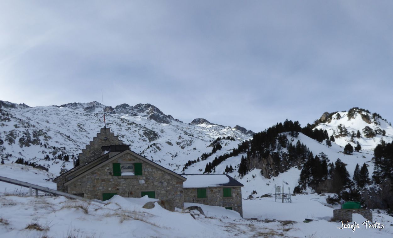 Excursión tranquila hasta La Renclusa con dos amigos, Tony y Narciso, impagable compañía, suave subida sin cuchillas y magníficas vistas del nuevo spot de escalada en hielo, parce que tengamos imán para encontrarnos en el hotel más alto del Valle de Benasque, el Refugio de La Renclusa, como siempre recibidos con un trato fenomenal.