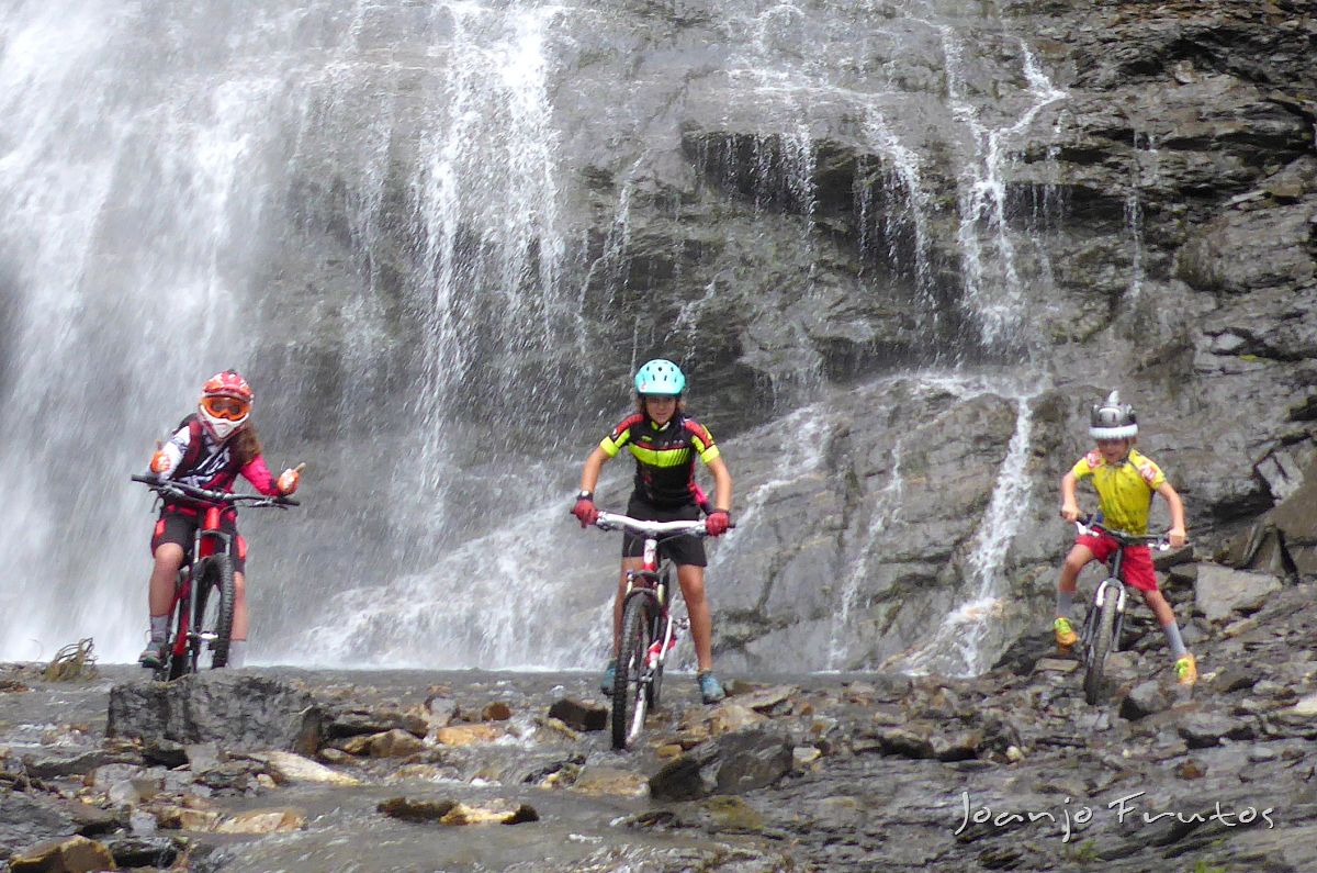 Vuelta corta pero muy bonita, respetando a los senderistas, pues vamos en un grupo en pedales. La ruta de las Tres Cascadas de Cerler vale la pena visitarlas todas las estaciones del año, en invierno hay que ir muy equipado, puesto que la nieve hace que el lugar sea bastante peligroso.