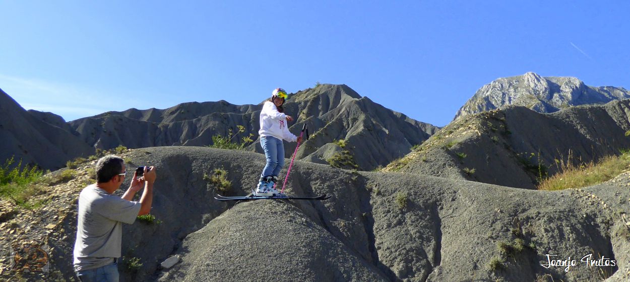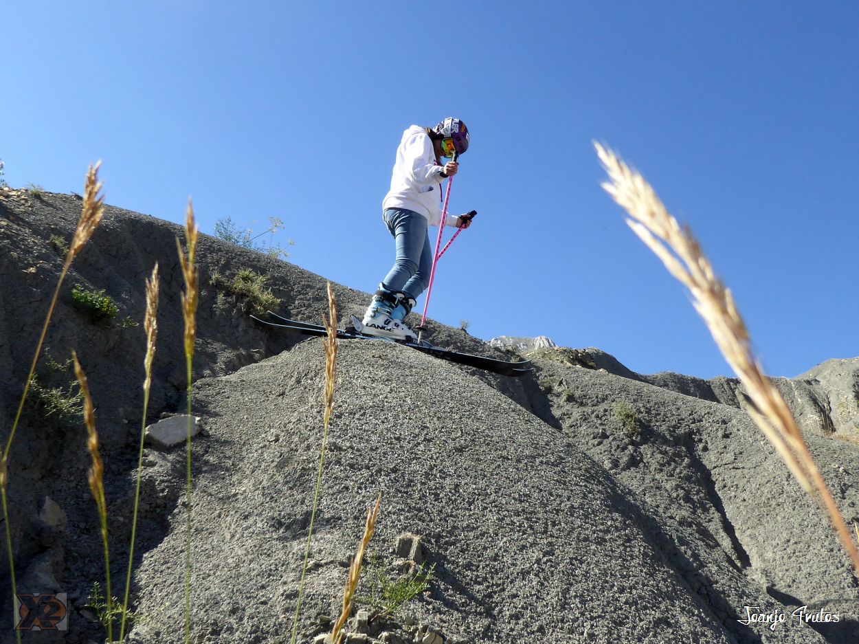 Después de la caminata nórdica matinal, hemos intentado esquiar cerca del Turbón en unas lomas de tierra, lástima que no estaban sueltas del todo.