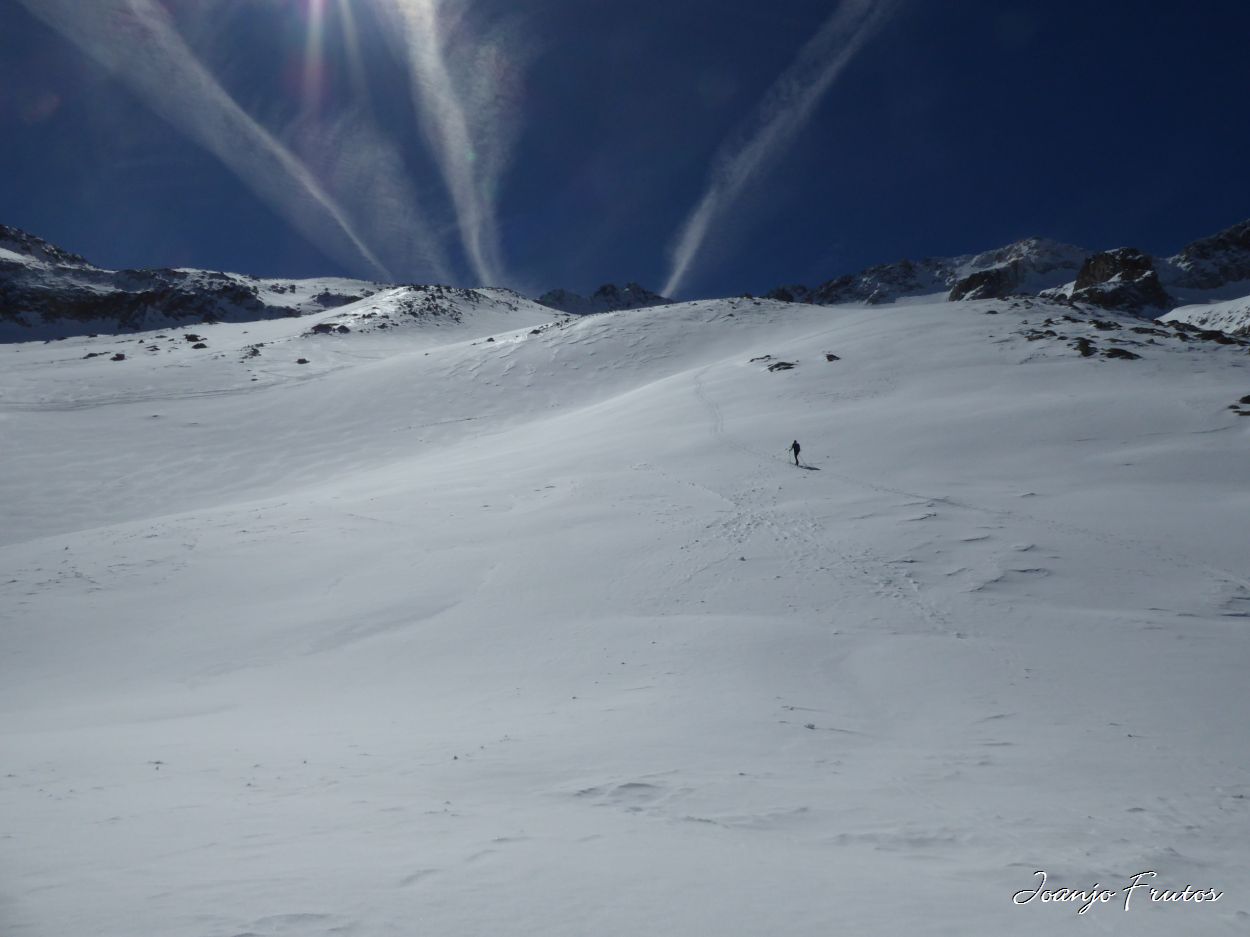 Hacía días que lo teníamos en mente y nos asustaban de como estaba la nieve de transformada, pero esta vez hemos aprovechado este amago de nortada para ver como estaba y sorpresa, cuatro dedos de nieve nueva en el glaciar y unos dos en La Renclusa, donde hemos parado para que David nos deleitara con sus majares.