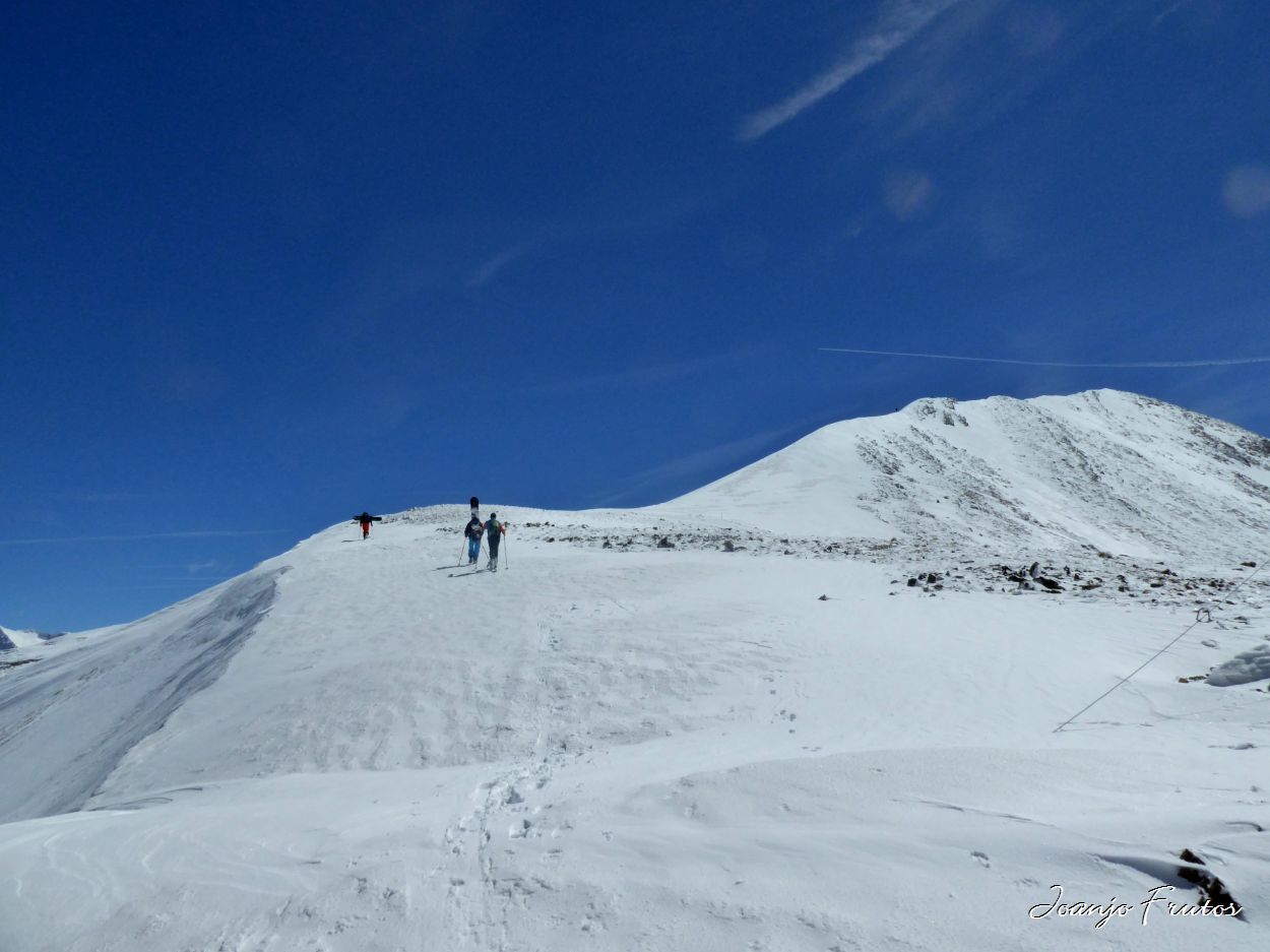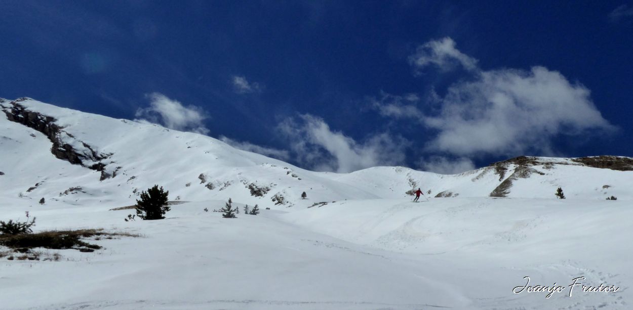 La salida de hoy ha tenido dos fases, una primera a ritmo bueno con Carme y Manuel, de esas que las pulsaciones no te las encuentras, pero entretenida con las charlas y vueltas-maría, recordatorio. Luego me encuentro a Ángel y sus intenciones eran más golosas, arriba de todo me he encontrado a dos monstruos del snowboard, José Félix y a Ferrán, que les hemos acompañado hasta el gassex primero camino a Cibollés, donde se dirigían ellos.