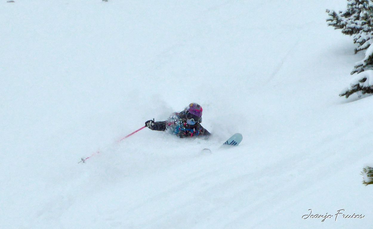 Esta vez si que han acertado lo de la meteo y hasta la televisión, y diría que hasta han hecho corto. Por eso nosotros aprovechamos para divertirnos con la nieve recién caída y de que manera, primer día que las piernas no han tenido tregua, es complicado seguir a Ruth a su ritmo.