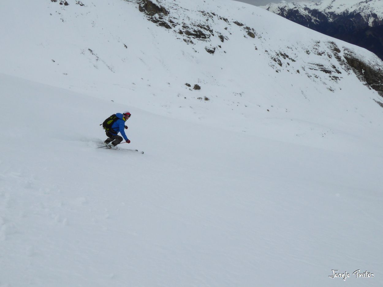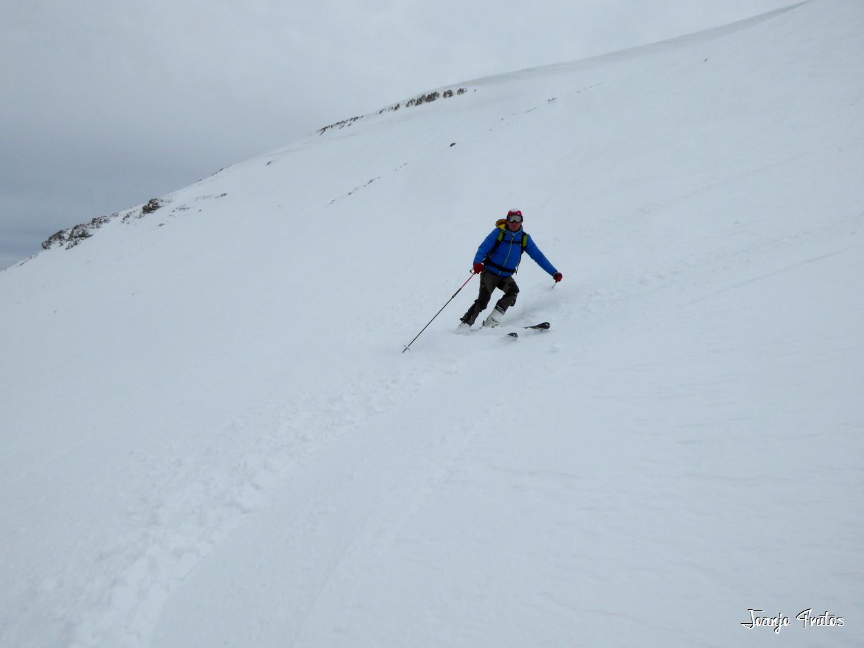 Subida rápida, porteo hasta el bosque de la captadora de agua y todo lo demás ya para disfrutar, arriba la temperatura fresquita y con una brisa que mantenía la nieve polvo. Rápidamente quitamos las focas y a ha realizar la mayor cantidad de SSSS que podamos.