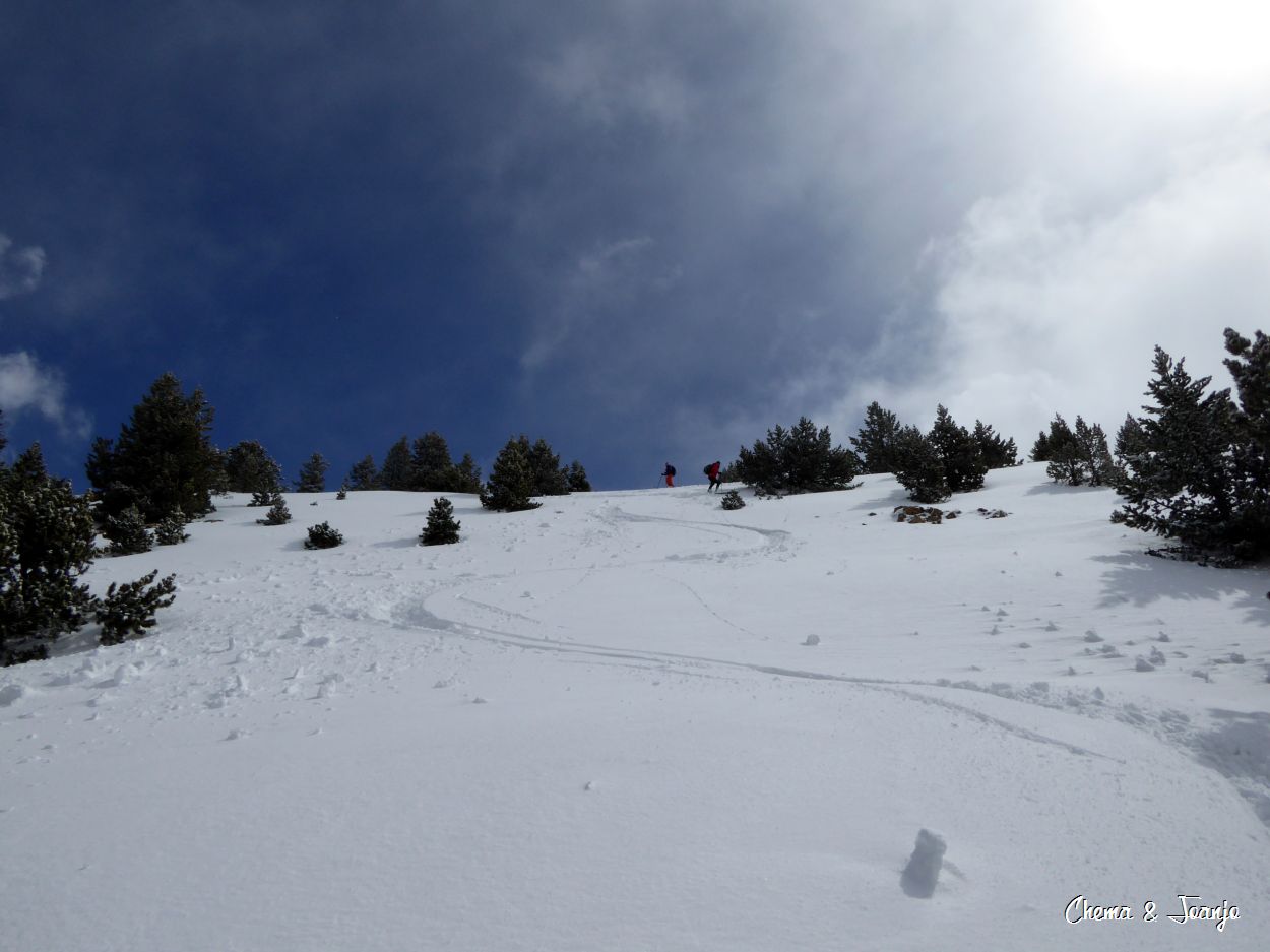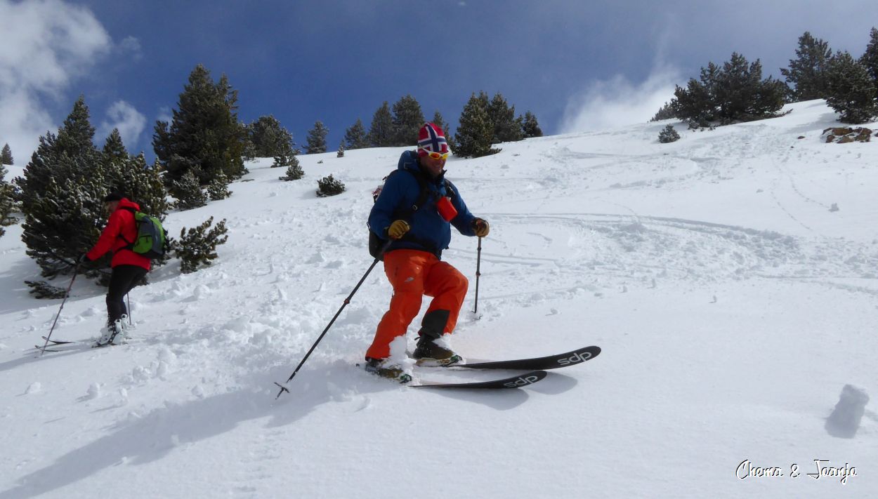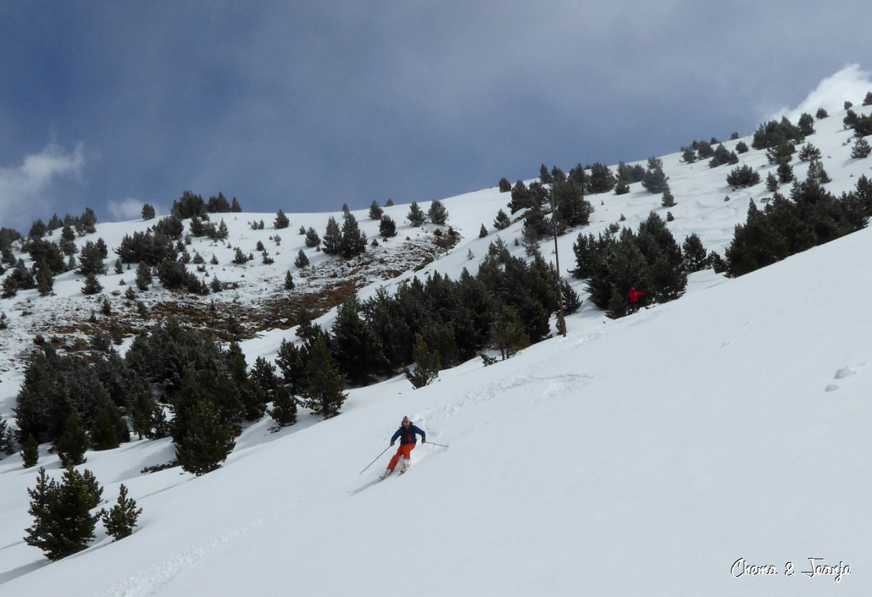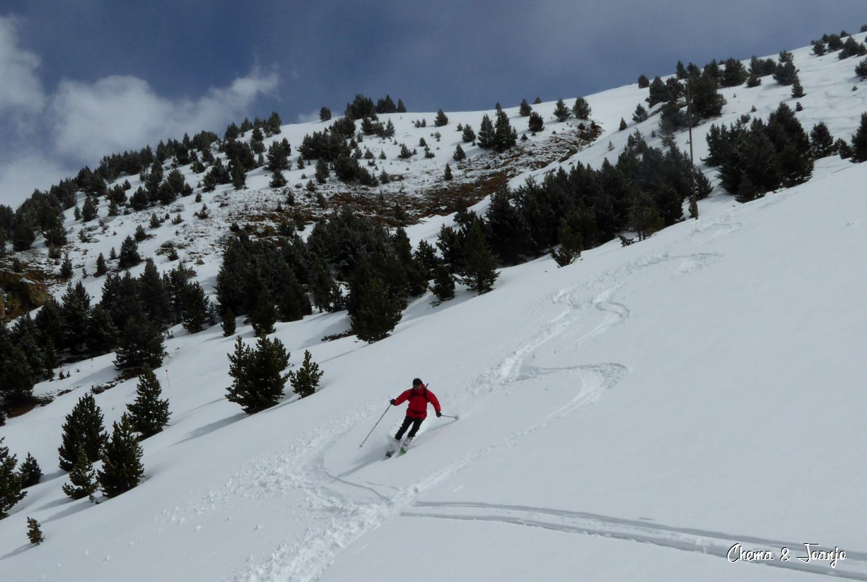 Empezamos el domingo con nevada nocturna, Ampriu sigue como una tarta de nata, subimos por La Solana, cada vez es más divertido pasar los puentes de nieve y arriba sorpresa la zona de Sarrau con nieve muy divertida, justo cuando ibamos a remontar para realizar alguna canal, nos ha entrado el frente y se ha puesto a nevar.