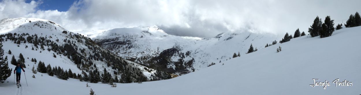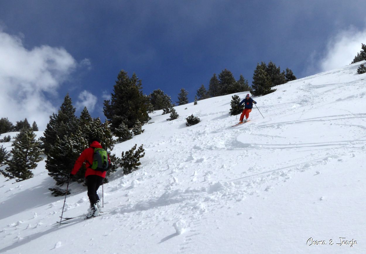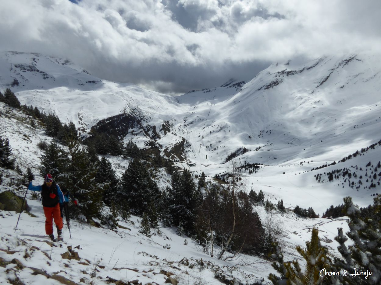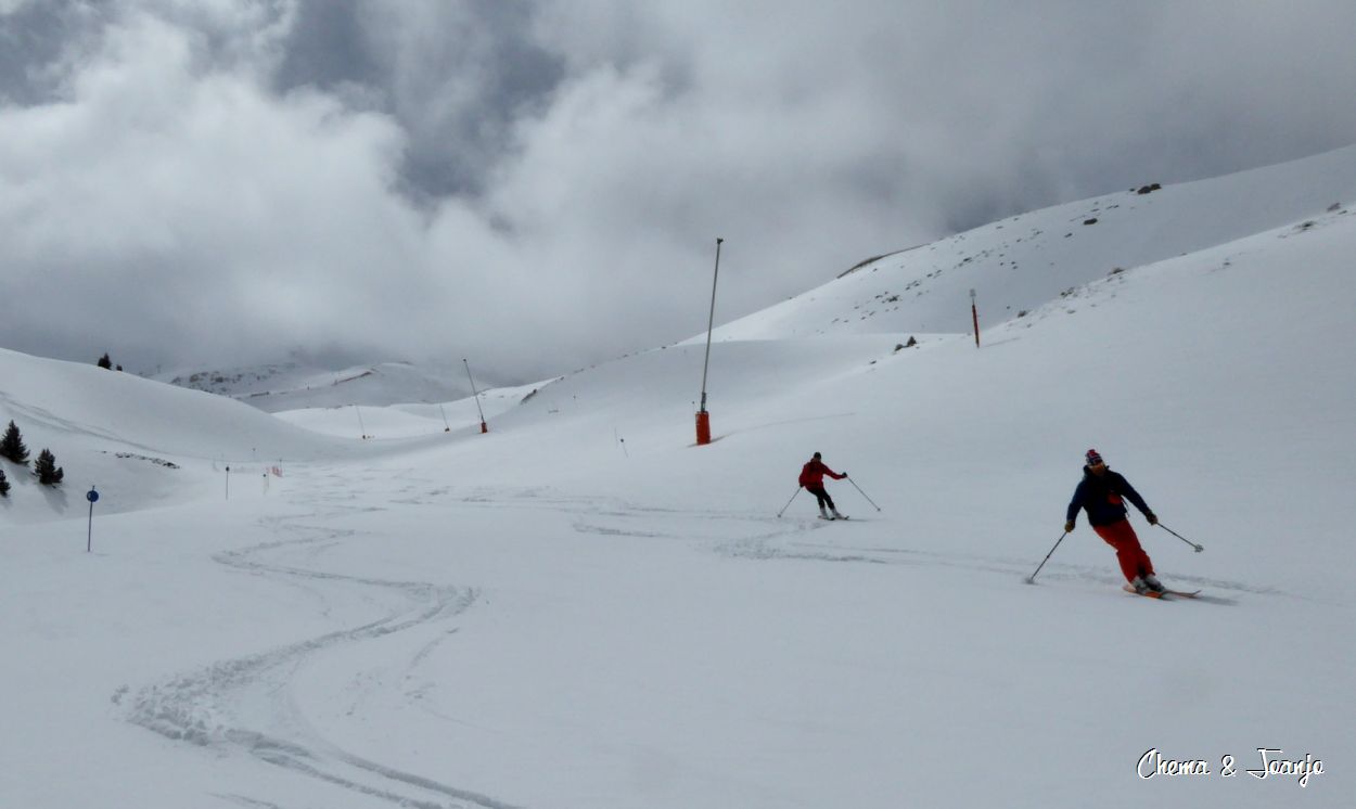 Empezamos el domingo con nevada nocturna, Ampriu sigue como una tarta de nata, subimos por La Solana, cada vez es más divertido pasar los puentes de nieve y arriba sorpresa la zona de Sarrau con nieve muy divertida, justo cuando ibamos a remontar para realizar alguna canal, nos ha entrado el frente y se ha puesto a nevar.