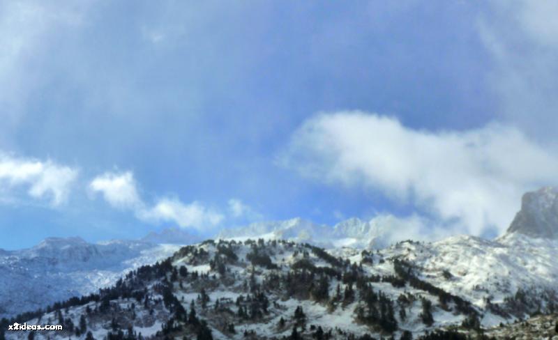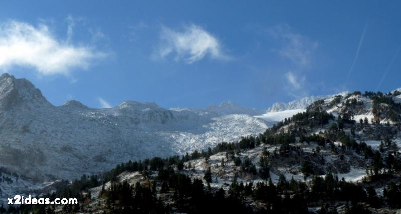 Desde antes del cruce del valle de Estós, la nieve en las montañas ha estado presente, la nortada ha hecho que al parabrisas del coche le hayan impactado algunos copos. Pasamos del verano al invierno en unas horas, pero seguimos sin precipitaciones de agua, y se necesita, aunque visualmente el paisaje nos alegra.