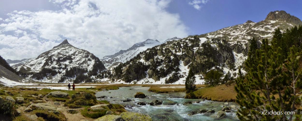 Empezamos la excursión en La Besurta y en el cruce de la Renclusa vemos donde seguramente mañana calzaremos esquís, giramos hacia dirección al Aneto desde su base.