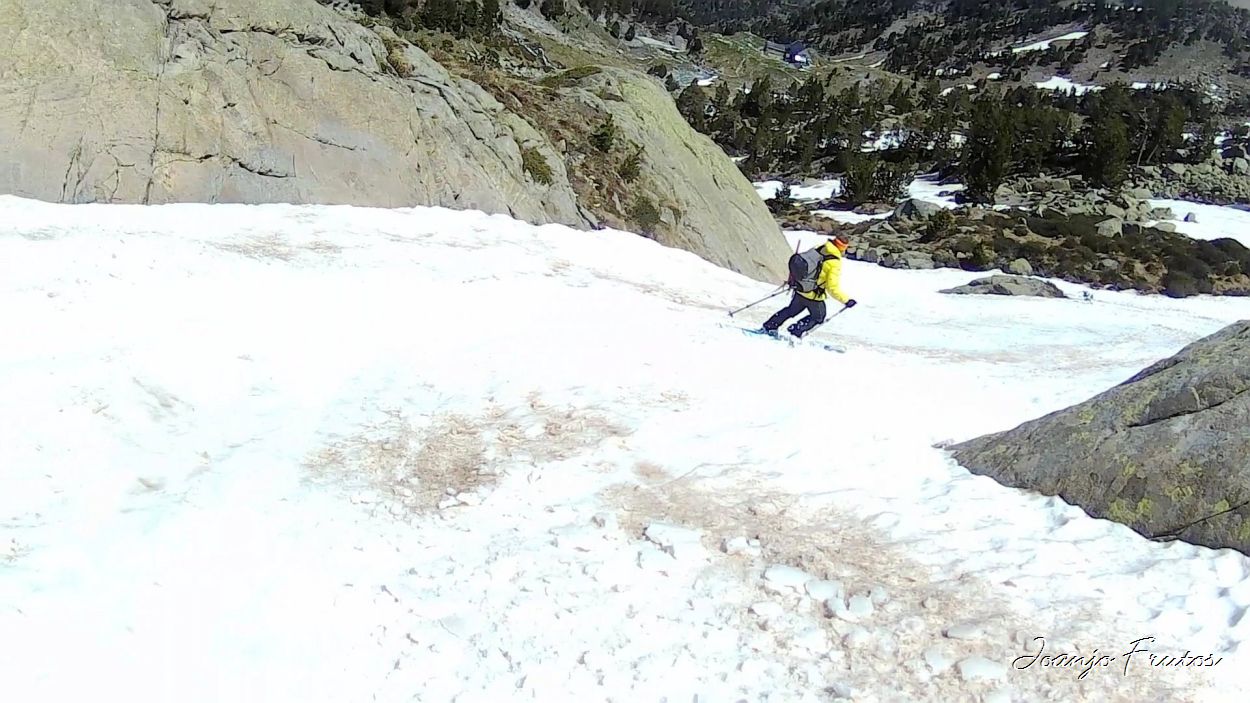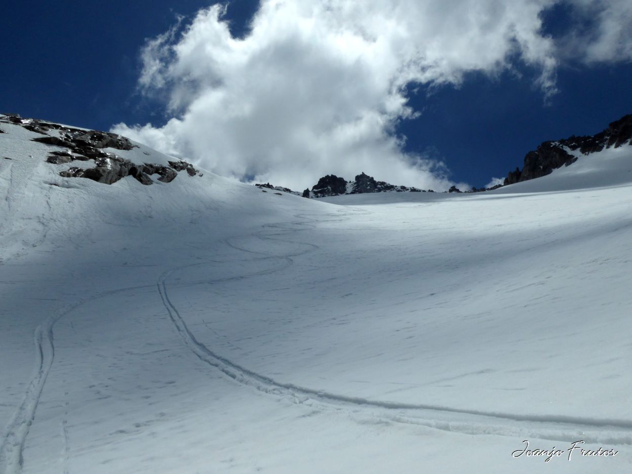 Descenso esquiando con una nieve algo más que aceptable hasta el mismo refugio.