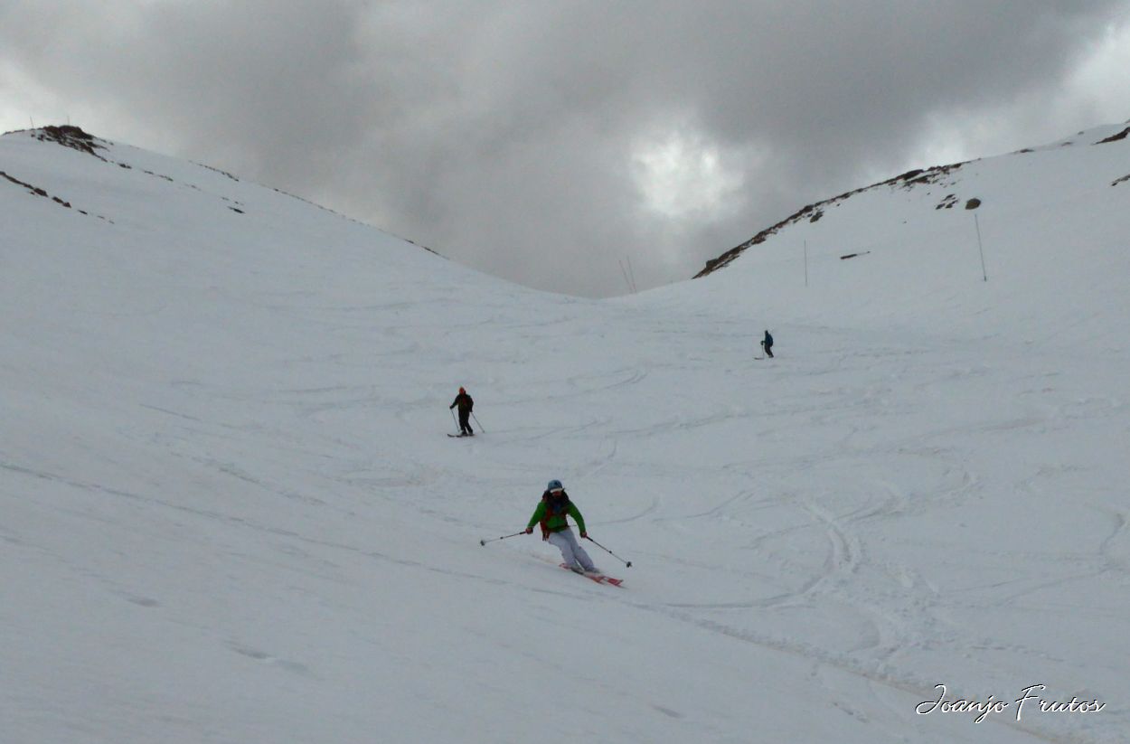 Nieve muy lenta, había que coger inclinación y entonces nos llevábamos la nieve recién caída estos días hasta la capa marrón, que era la que se dejaba disfrutar.