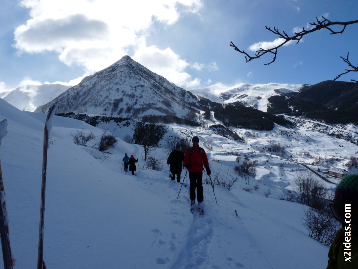 | Las raquetas se quedan en la ermita de San Pedro Mártir y los de esquí continuamos. |