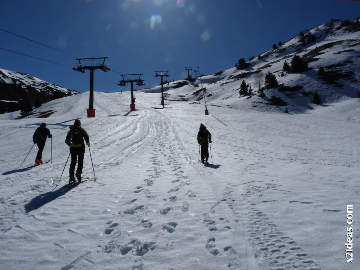 Paseando por Basibé, gran solución para hoy, poder seguir a mi hija y a una pareja de amigos (Arancha y Gonzalo), buena compañía y nieve espectacular, como un chef diría: «está en su punto». La estación lleva días cerrada, pero está de escándalo para practicar travesía, para realizar más tarde proyectos mejores. «Te espero Virutas». Ruth está imparable, no sé hasta cuando podré acompañarla, menudo «jabalí» nos ha salido en el valle de Benasque. Este jardín de casa da para mucho …