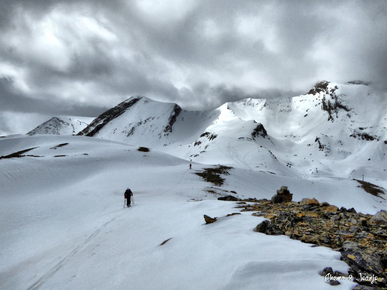 Sexto día consecutivo por pistas de Cerler, esta vez subida por Basibé hasta Pasolobino, la ventana de buen tiempo no nos da para más, travesía corta pero divertida, por la parte casi desconocida de Ampriu, el vallecito que queda escondido antes del pico de Pasolobino.
